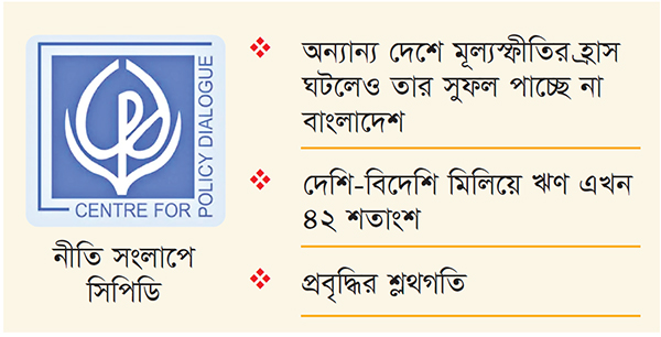 দ্বিতীয়ত ঋণের পরিস্থিতি। সরকার বিদেশি উৎস থেকে যে টাকা নেয়, তার চেয়ে দেশীয় উৎস থেকে দ্বিগুণ টাকা ঋণ নেয়। এটার দায়-দেনা পরিস্থিতি ভিন্ন একটা ইঙ্গিত বহন করছে। তৃতীয় সমস্যা হচ্ছে সাম্প্রতিক সময়ে প্রবৃদ্ধির যে ধারা ছিল, সেই ধারায় শ্লোথকরণ হয়েছে। এর সঙ্গে সঙ্গে কর আহরণ সংকুচিত হয়ে যাচ্ছে। তিনি বলেন, দেশে মূল্যস্ফীতি এখনো ১০.১০-এর কাছাকাছি, যা মানুষের ক্রয়ক্ষমতা হ্রাস করছে। পিছিয়ে পড়া মানুষের ভোগ, শিক্ষা ও স্বাস্থ্যের ওপর মূল্যস্ফীতি সরাসরি প্রভাব ফেলছে। এসব কারণে বাল্যবিবাহ বেড়ে যাচ্ছে। বর্তমান পরিস্থিতিতে পৃথিবীতে যেখানে মূল্যস্ফীতি কমছে; কিন্তু সেই সুফল বাংলাদেশে দেওয়া যাচ্ছে না।