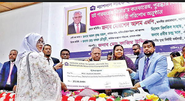 ন্যাশনাল লাইফ ইন্স্যুরেন্স কোম্পানি লিমিটেডের হাই পারফরম্যান্স লিডারস কনফারেন্স, পুরস্কার বিতরণ, বিমা দাবি অনুষ্ঠান অনুষ্ঠিত হয়েছে। গত শুক্রবার কক্সবাজার হোটেল সি প্যালেস অডিটরিয়াম এই এই অনুষ্ঠান অনুষ্ঠিত হয়। এতে প্রধান অতিথি হিসেবে উপস্থিত ছিলেন ন্যাশনাল লাইফ ইন্স্যুরেন্স কোম্পানি লিমিটেডের চেয়ারম্যান আলহাজ মোরশেদ আলম এমপি। গেস্ট অফ ওনার হিসেবে উপস্থিত ছিলেন অর্থ মন্ত্রণালয়ের আর্থিক প্রতিষ্ঠান বিভাগের অতিরিক্ত সচিব অমল কৃষ্ণ মন্ডল। বিশেষ অতিথি হিসেবে উপস্থিত ছিলেন ন্যাশনাল লাইফ ইন্স্যুরেন্স কোম্পানি লিমিটেডের সিইও মো. কাজিম উদ্দিন, ন্যাশনাল লাইফ ইন্স্যুরেন্সের অতিরিক্ত ব্যবস্থাপনা পরিচালক মোঃ খসরু চৌধুরী, ন্যাশনাল লাইফ ইন্স্যুরেন্সের পরিচালক মিসেস বিলকিস নাহার, ন্যাশনাল অফ ইন্স্যুরেন্সের এফসিও ও ডিএমডি প্রবীর চন্দ্র দাস (এফসিএ)।