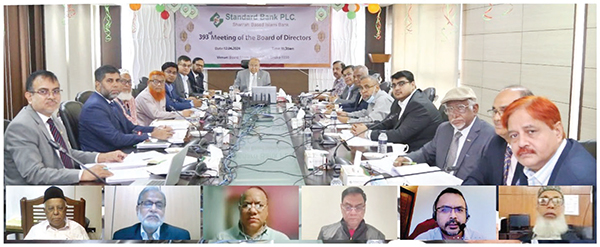 শরিয়াহভিত্তিক স্ট্যান্ডার্ড ব্যাংক পিএলসির পরিচালনা পর্ষদের ৩৯৩তম (বিশেষ) সভা, ১২ জুন ২০২৪ তারিখে ঢাকায় ব্যাংকের প্রধান কার্যালয়ে অনুষ্ঠিত হয়। উক্ত সভায় সভাপতিত্ব করেন ব্যাংকের পরিচালনা পর্ষদের সম্মানিত চেয়ারম্যান কাজী আকরাম উদ্দিন আহ্মদ। সভায় ব্যাংকের সম্মানিত ভাইস চেয়ারম্যান মো. মনজুর আলম, সম্মানিত পরিচালক কামাল মোস্তফা চৌধুরী, অশোক কুমার সাহা, ফিরোজুর রহমান, এসএএম হোসাইন, মোহাম্মদ আবদুল আজিজ, আলহাজ মোহাম্মদ শামসুল আলম, গুলজার আহমেদ, কাজী খুররম আহমেদ, একেএম আবদুল আলীম, মো. আবুল হোসেন এবং স্বতন্ত্র পরিচালক নজমুল হক চৌধুরী, গোলাম হাফিজ আহমেদ ও একেএম দেলোয়ার হোসেন এফসিএমএ এবং ব্যাংকের ভারপ্রাপ্ত ব্যবস্থাপনা পরিচালক ও সিইও মো. মোহন মিয়া অংশগ্রহণ করেন। বাংলাদেশ ব্যাংকের পরিচালক এ কে এম গোলাম মাহমুদ, অতিরিক্ত পরিচালক আবু হেনা মোস্তফা কামাল মৃধা, যুগ্ম পরিচালক মোহাম্মদ মাহবুবুর রহমান ও উপ পরিচালক লেনিন আজাদ পলাশ এর উপস্থিতিতে অনুষ্ঠিত এই সভায় আরো অংশগ্রহণ করেন- স্ট্যান্ডার্ড ব্যাংক এর উপব্যবস্থাপনা পরিচালক ও সিওও মো. সিদ্দিকুর রহমান এবং ভারপ্রাপ্ত কোম্পানি সেক্রেটারি মো. আলী রেজা এফসিএমএ, সিআইপিএ।