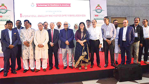 এর আগে ফিতা কেটে দেশের প্রথম আন্তর্জাতিক জুয়েলারি মেশিনারিজ প্রদর্শনীর আনুষ্ঠানিক উদ্বোধন করেন বসুন্ধরা গ্রুপের চেয়ারম্যান আহমেদ আকবর সোবহান। এ সময় উপস্থিত ছিলেন বসুন্ধরা গ্রুপের পরিচালক আহমেদ ইব্রাহিম সোবহান, ইস্ট ওয়েস্ট মিডিয়া গ্রুপের পরিচালক ও কালের কণ্ঠের প্রধান সম্পাদক ইমদাদুল হক মিলন, বসুন্ধরা গ্রুপের প্রেস অ্যান্ড মিডিয়া উপদেষ্টা মোহাম্মদ আবু তৈয়বসহ বাজুসের নেতারা।