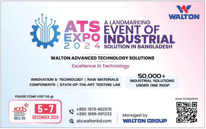 দ্বিতীয়বারের মতো অনুষ্ঠিত হতে যাচ্ছে দেশের একক বৃহৎ শিল্পমেলা এটিএস এক্সপো-২০২৪। এই বৃহৎ শিল্পমেলা আয়োজন করছে বাংলাদেশের শীর্ষ ইলেকট্রিক্যাল, ইলেকট্রনিক্স ও প্রযুক্তিপণ্য উৎপাদনকারী প্রতিষ্ঠান ওয়ালটন। মেলায় একই ছাদের নিচে প্রদর্শন করা হবে সব প্রকার শিল্প প্রতিষ্ঠানে ব্যবহার উপযোগী পিসিবি, মাদারবোর্ড, মোল্ড অ্যান্ড ডাইসহ ৫০ হাজারেরও বেশি ইন্ডাস্ট্রিয়াল ম্যাটেরিয়ালস, কম্পোনেন্টস, সার্ভিসেস ও টেস্টিং সল্যুশনস। পাশাপাশি এনার্জি সেভিং ও পরিবেশবান্ধব ফ্রিজ, এসি, টিভি, ওয়াশিং মেশিন, লিফটসহ বিভিন্ন ধরণের ইলেকট্রনিক্স, ইলেকট্রিক্যাল, হোম এবং কিচেন অ্যাপ্লায়েন্স পণ্য সামগ্রী প্রদর্শিত হবে। রাজধানীর বসুন্ধরা আন্তর্জাতিক কনভেনশন সিটি হল-৩ এ আগামী বৃহস্পতিবার শুরু হবে ৩-দিনব্যাপী এটিএস এক্সপো বা অ্যাডভান্সড টেকনোলজি সল্যুশনস শীর্ষক শিল্পমেলা। চলবে আগামী ৭ ডিসেম্বর পর্যন্ত। ওয়ালটন কর্তৃপক্ষ জানায়, এটিএস এক্সপো-২০২৪ এ অংশগ্রহণ করতে আগ্রহী শিল্পোদ্যোক্তা, ক্রেতা ও দর্শনার্থীদের জন্য চলছে রেজিস্ট্রেশন কার্যক্রম। আগ্রহী ব্যক্তিরা https://ats.waltonbd.com ওয়েব পেজে গিয়ে রেজিস্ট্রেশন করতে পারবেন। ইতোমধ্যে প্রচুর সংখ্যক সরকারি এবং দেশি-বিদেশি বিভিন্ন বেসরকারি শিল্প প্রতিষ্ঠানের প্রতিনিধিরা মেলায় অংশ গ্রহণের জন্য রেজিস্ট্রেশন কার্যক্রম সম্পন্ন করেছেন। ওয়ালটনের করপোরেট সেলস বিভাগের প্রধান এবং এটিএস এক্সপো আয়োজক কমিটির সেক্রেটারি আহমেদ তানভীর জানান, ওয়ালটন হাই-টেক পার্কে গড়ে তোলা হয়েছে দক্ষিণ এশিয়ার সর্ববৃহৎ রিসার্চ অ্যান্ড ইনোভেশন সেন্টার এবং নাসদাত-ইউটিএস এর মতো বেশকিছু আন্তর্জাতিকমানের টেস্টিং ল্যাব। সেখানে নিয়োজিত অত্যন্ত দক্ষ ৬ শতাধিক দেশি-বিদেশি প্রকৌশলী প্রতিনিয়ত বিদ্যুৎ সাশ্রয়ী ও পরিবেশবান্ধব উদ্ভাবনী প্রযুক্তি এবং ফিচারের পণ্য উৎপাদন করছে।