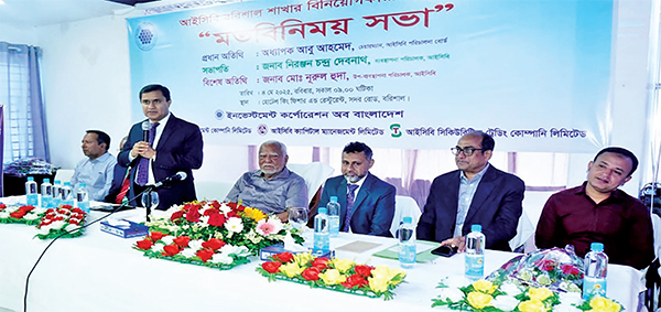 রাষ্ট্রায়ত্ত বিনিয়োগ সংস্থা ইনভেস্টমেন্ট কর্পোরেশন অব বাংলাদেশ (আইসিবি) এর বরিশাল শাখার বিনিয়োগকারীদের সঙ্গে মতবিনিময় সভা অনুষ্ঠিত হয়েছে। গত রোববার সকাল সাড়ে ৯টায় নগরীর একটি হোটেলে এ মতবিনিময় সভা অনুষ্ঠিত হয়। আইসিবির ব্যবস্থাপনা পরিচালক নিরঞ্জন চন্দ্র দেবনাথের সভাপতিত্বে অনুষ্ঠানে প্রধান অতিথি হিসেবে উপস্থিত ছিলেন আইসিবির চেয়ারম্যান অধ্যাপক আবু আহমেদ। অনুষ্ঠানে বিশেষ অতিথি ছিলেন আইসিবির উপ-ব্যবস্থাপনা পরিচালক মো. নূরুল হুদা। মতবিনিময় সভায় স্বাগত বক্তব্য রাখেন আইসিবির সহকারী মহাব্যবস্থাপক ও বরিশাল শাখার প্রধান মো. শামীম উদ্দীন আহমেদ।