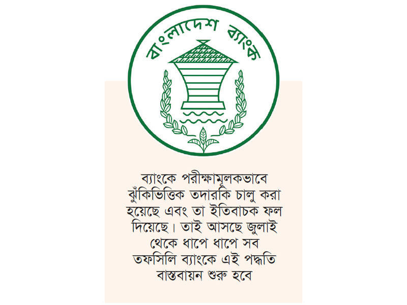 এরইমধ্যে কিছু ব্যাংকে পরীক্ষামূলকভাবে ঝুঁকিভিত্তিক তদারকি চালু করা হয়েছে এবং তা ইতিবাচক ফল দিয়েছে। তাই আসছে জুলাই থেকে ধাপে ধাপে সব তফসিলি ব্যাংকে এই পদ্ধতি বাস্তবায়ন শুরু হবে। বাংলাদেশ ব্যাংকের ব্যাখ্যা অনুযায়ী, এই নতুন তদারকি কাঠামোর আওতায় প্রতিটি ব্যাংকের আর্থিক, বাজার, পরিচালনাগত, আইনগত এবং কৌশলগত ঝুঁকি আরও সঠিকভাবে শনাক্ত করা সম্ভব হবে। সেইভিত্তিতে প্রয়োজনীয় পদক্ষেপও দ্রুত নেওয়া যাবে। এতে প্রতিটি ব্যাংকের কার্যক্রম আলাদাভাবে মূল্যায়ন এবং ঝুঁকিপূর্ণ জায়গাগুলোয় দ্রুত হস্তক্ষেপ করা সহজ হবে। নতুন কাঠামো বাস্তবায়নে বাংলাদেশ ব্যাংকের নিজস্ব সংগঠনেও বড় ধরনের পরিবর্তন আসছে। নতুনভাবে গঠন করা হবে একাধিক তদারকি বিভাগ, যেমন, তদারকি নীতিমালা ও সমন্বয় বিভাগ, তথ্য বিশ্লেষণ ও ব্যবস্থাপনা বিভাগ, প্রযুক্তি ও ডিজিটাল ব্যাংকিং তদারকি বিভাগ, এবং অর্থপাচার ও সন্ত্রাসে অর্থায়ন রোধবিষয়ক ঝুঁকি তদারকি বিভাগ। এছাড়া প্রতিটি ব্যাংকের জন্য থাকবে পৃথক তদারকি দল।