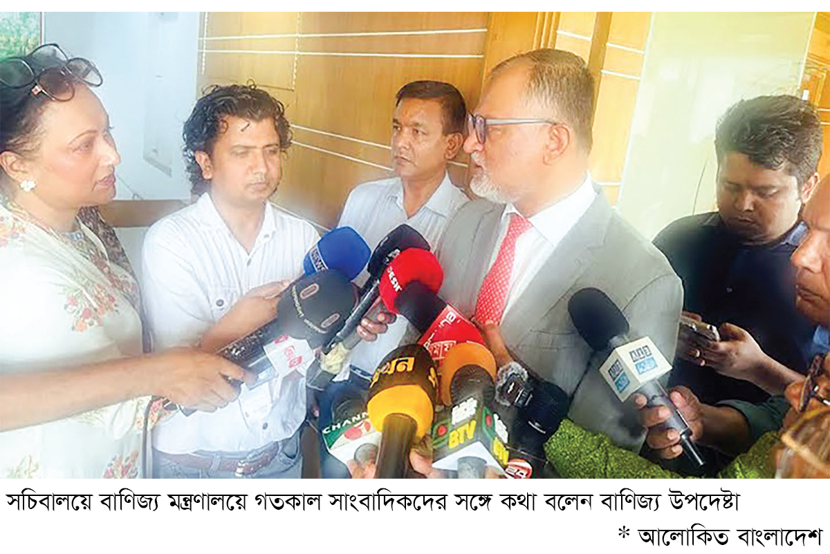 বাংলাদেশ মার্কিন যুক্তরাষ্ট্রের ৩৫ শতাংশ শুল্ক আরোপ নিয়ে আলোচনার জন্য চিঠির জবাব ও আমন্ত্রণের অপেক্ষায় আছে বলে জানিয়েছেন বাণিজ্য উপদেষ্টা শেখ বশিরউদ্দীন। একইসঙ্গে আজ শুক্রবার যুক্তরাষ্ট্রের সঙ্গে আমাদের একটি অনলাইন মিটিং রয়েছে। তার ওপর ভিত্তি করে আমরা আমাদের পরবর্তী কর্মকাণ্ড নির্ধারণ করবো। গতকাল বৃহস্পতিবার সচিবালয়ে বাণিজ্য মন্ত্রণালয়ে নিজ দপ্তরের সামনে সাংবাদিকদের এক প্রশ্নের জবাবে তিনি এ কথা জানান।