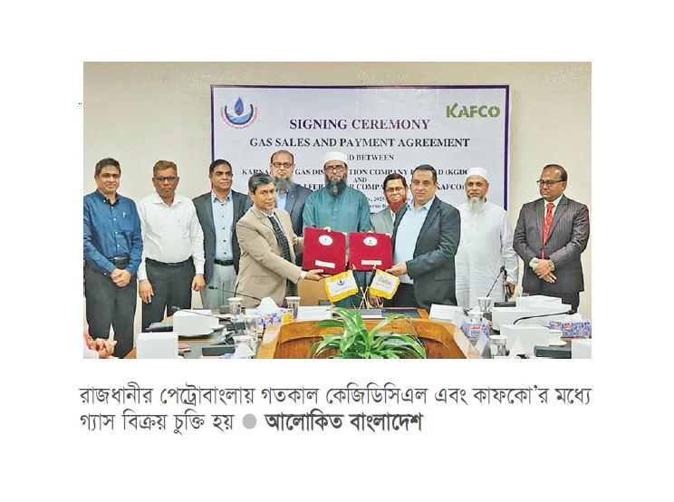 বাংলাদেশের জ্বালানি খাতে এক গুরুত্বপূর্ণ মাইলফলক হিসেবে গতকাল ঢাকার পেট্রোবাংলায় কর্ণফুলী গ্যাস ডিস্ট্রিবিউশন কোম্পানি লিমিটেড (কেজিডিসিএল) এবং কর্ণফুলী ফার্টিলাইজার কোম্পানি লিমিটেডের (কাফকো) মধ্যে একটি গ্যাস বিক্রয় চুক্তি স্বাক্ষরিত হয়েছে। এই চুক্তির মাধ্যমে কাফকোতে নিরবচ্ছিন্ন গ্যাস সরবরাহ নিশ্চিত করা হবে। যা দেশের কৃষি ও শিল্প উৎপাদন বৃদ্ধিতে সরাসরি অবদান রাখবে। এই চুক্তি অনুযায়ী কেজিডিসিএল কাফকোকে গড়ে দৈনিক ৫৫ মিলিয়ন ঘনফুট (এমএমসিএফডি) হারে প্রাকৃতিক গ্যাস সরবরাহ করবে। এই বিপুল পরিমাণ গ্যাস সরবরাহ কাফকোর সার উৎপাদন প্রক্রিয়াকে আরও শক্তিশালী করবে এবং দেশের খাদ্য নিরাপত্তা নিশ্চিতকরণে গুরুত্বপূর্ণ ভূমিকা রাখবে। কেজিডিসিএলের পক্ষে কোম্পানির সচিব কবির উদ্দিন আহম্মদ এবং কাফকো’র পক্ষে সিসিও ও কোম্পানি সচিব খাজা সাইদুর রহমান নিজ নিজ প্রতিষ্ঠানের পক্ষে চুক্তিতে স্বাক্ষর করেন। চুক্তি স্বাক্ষর অনুষ্ঠানে সভাপতি হিসেবে উপস্থিত ছিলেন জ্বালানি ও খনিজ সম্পদ বিভাগের সচিব মোহাম্মদ সাইফুল ইসলাম। তার সভাপতিত্বে অনুষ্ঠিত এই আয়োজনে দেশের শীর্ষস্থানীয় সরকারি ও শিল্প খাতের উচ্চপদস্থ কর্মকর্তারা উপস্থিত ছিলেন। তাদের মধ্যে উল্লেখযোগ্য হলেন- শিল্প মন্ত্রণালয়ের সচিব মো. ওবায়দুর রহমান, কেজিডিসিএলের পরিচালনা পর্ষদের চেয়ারম্যান এস এম মঈন উদ্দীন আহম্মেদ, পেট্রোবাংলার চেয়ারম্যান রেজানুর রহমান, বিসিআইসি চেয়ারম্যান মো. ফজলুর রহমান এবং কেজিডিসিএলের ব্যবস্থাপনা পরিচালকসহ জ্বালানি ও খনিজ সম্পদ বিভাগ, কাফকো এবং পেট্রোবাংলার ঊর্ধ্বতন কর্মকর্তারা। উল্লেখ্য চুক্তি স্বাক্ষর শেষে কর্ণফুলী ফার্টিলাইজার কোম্পানি লিমিটেডের (কাফকো) পক্ষে শিল্প সচিব মো. ওবায়দুর রহমান কেজিডিসিএলের পরিচালনা পর্ষদের চেয়ারম্যান এস এম মঈন উদ্দীন আহম্মেদ এর কাছে বকেয়া গ্যাস বিল বাবদ ৯২৩ কোটি ৮১ লাখ ১৮ হাজার ৬১৬ টাকা এবং ডিমান্ড চার্জ বাবদ ৩৪ কোটি ৩৭ লাখ ৩৫ হাজার ৮৪৮ টাকার দু’টি চেক হস্তান্তর করেন। এ পর্যায়ে কর্ণফুলী গ্যাস ডিস্ট্রিবিউশন কোম্পানি লিমিটেডের (কেজিডিসিএল) ব্যবস্থাপনা পরিচালক প্রকৌশলী সালাহউদ্দিন পেট্রোবাংলার চেয়ারম্যান মো. রেজানুর রহমানের কাছে বকেয়া বাবদ ৬৩৪ কোটি ১ লাখ ৭৭ হাজার ২৬৫ টাকার চেক হস্তান্তর করবেন। এই চুক্তি স্বাক্ষর দেশের অর্থনৈতিক অগ্রযাত্রায় বিশেষ করে কৃষিভিত্তিক শিল্পে জ্বালানি নিরাপত্তা সুদৃঢ় করার সরকারের অঙ্গীকারেরই প্রতিফলন। এটি কাফকোর মতো বৃহৎ উৎপাদনকারী প্রতিষ্ঠানের সক্ষমতা বৃদ্ধিতে সহায়ক হবে এবং স্থানীয়ভাবে সার উৎপাদন বৃদ্ধির মাধ্যমে আমদানি নির্ভরতা কমাতেও অবদান রাখবে। এই অংশীদারিত্ব বাংল
