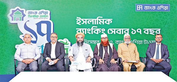 ব্যাংক এশিয়া ইসলামিক ব্যাংকিং সেবার ১৭তম প্রতিষ্ঠাবার্ষিকী উপলক্ষে রাজধানীর কারওয়ান বাজারস্ব ব্যাংক এশিয়া টাওয়ারে এক আলোচনা সভা ও দোয়া মাহফিলের আয়োজন করা হয়। অনুষ্ঠানে সম্মানিত অতিথি হিসেবে উপস্থিত ছিলেন ব্যাংকের শরিয়াহ সুপারভাইজরি কমিটির প্রাক্তন চেয়ারম্যান মুফতি শাহেদ রহমানী, প্রাক্তন সদস্য সচিব মাওলানা শাহ মোহাম্মদ ওয়ালী উল্লাহ্, ফকিহ্ সদস্য মাওলানা মুহাম্মদ মোফাজ্জল হুসাইন খান এবং ড. মাওলানা মুহাম্মদ ইসমাইল হোসেন। ব্যাংকের উপ-ব্যবস্থাপনা পরিচালক আরিকুল আরেফিনসহ অন্য উপ-ব্যবস্থাপনা পরিচালক, বিভিন্ন বিভাগের প্রধান এবং অন্য কর্মকতারা সভায় উপস্থিত ছিলেন। সূত্র : সংবাদ বিজ্ঞপ্তি
