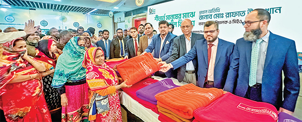 দেশের অন্যতম প্রধান শরিয়াহ্ ভিত্তিক ব্যাংক আল-আরাফাহ্ ইসলামী ব্যাংক প্রতি বছরের ন্যায় এবছরও শীতার্ত মানুষের মাঝে কম্বল বিতরণ করছে। গতকাল রোববার ব্যাংকের ব্যবস্থাপনা পরিচালক ও সিইও মো. রাফাত উল্লা খান শীতার্তদের মাঝে কম্বল বিতরণ করেন। প্রধান কার্যালয়ে আয়োজিত অনুষ্ঠানে ব্যাংকের উপ-ব্যবস্থাপনা পরিচালক মো. আবদুল্লাহ আল মামুন, মো. আসাদুজ্জামান ভূঞা, মোহাম্মদ হোসেন, সিনিয়র এক্সিকিউটিভ ভাইস প্রেসিডেন্ট ইঞ্জিনিয়ার মো. হাবীব উল্লাহ, এক্সিকিউটিভ ভাইস প্রেসিডেন্ট জালাল আহমেদ ও মো. জাকির হোসেন ভূঁইয়া, সিনিয়র ভাইস প্রেসিডেন্ট মো. রফিকুল ইসলাম এবং প্রধান কার্যালয়ের শীর্ষ নির্বাহীরা উপস্থিত ছিলেন। কর্পোরেট সামাজিক দায়বদ্ধতা থেকে চলতি শীত মৌসুমে ১ লাখ ৩০ হাজার পিস কম্বল বিতরণ করছে আল-আরাফাহ্ ইসলামী ব্যাংক। সূত্র : সংবাদ বিজ্ঞপ্তি