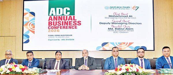 পূবালী ব্যাংক পিএলসির এডিসি বিভাগের বার্ষিক বিজনেস কনফারেন্স-২০২৬ ব্যাংকের প্রধান কার্যালয়ের অডিটোরিয়ামে গতকাল রোববার অনুষ্ঠিত হয়। সম্মেলনে প্রধান অতিথি হিসেবে উপস্থিত ছিলেন পূবালী ব্যাংকের ব্যবস্থাপনা পরিচালক ও প্রধান নির্বাহী মোহাম্মদ আলী। বিশেষ অতিথি হিসেবে উপস্থিত ছিলেন ব্যাংকের উপ-ব্যবস্থাপনা পরিচালকবৃন্দণ্ড মোহাম্মদ ইছা, মোহাম্মদ শাহাদাত হোসেন, আহমদ এনায়েত মনজুর, মো. শাহনেওয়াজ খান ও মোহাম্মদ আনিসুজ্জামান। সম্মেলনে সভাপতিত্ব করেন ব্যাংকের এডিসি বিভাগের প্রধান ও ডিজিএম মো. রবিউল আলম। সূত্র : সংবাদ বিজ্ঞপ্তি
