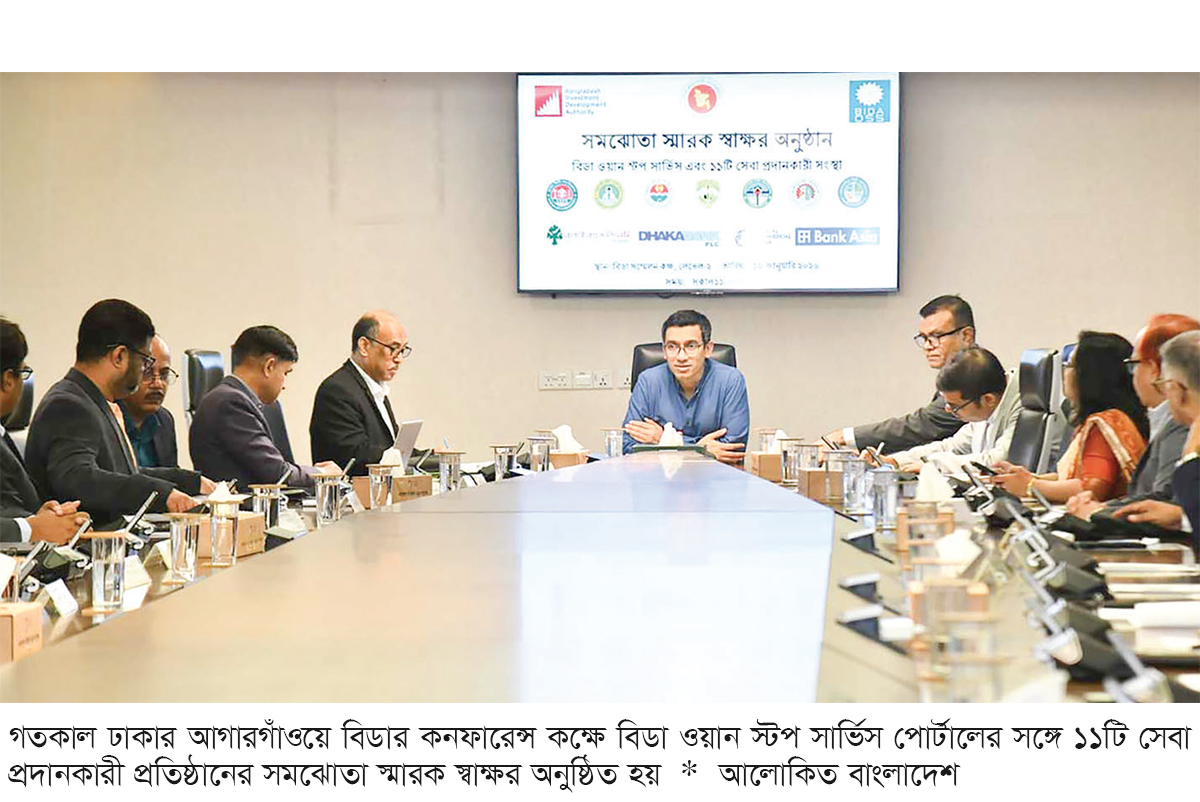 বিডার ওয়ান স্টপ সার্ভিস পোর্টালের সঙ্গে ১১ প্রতিষ্ঠানের সমঝোতা স্মারক স্বাক্ষর