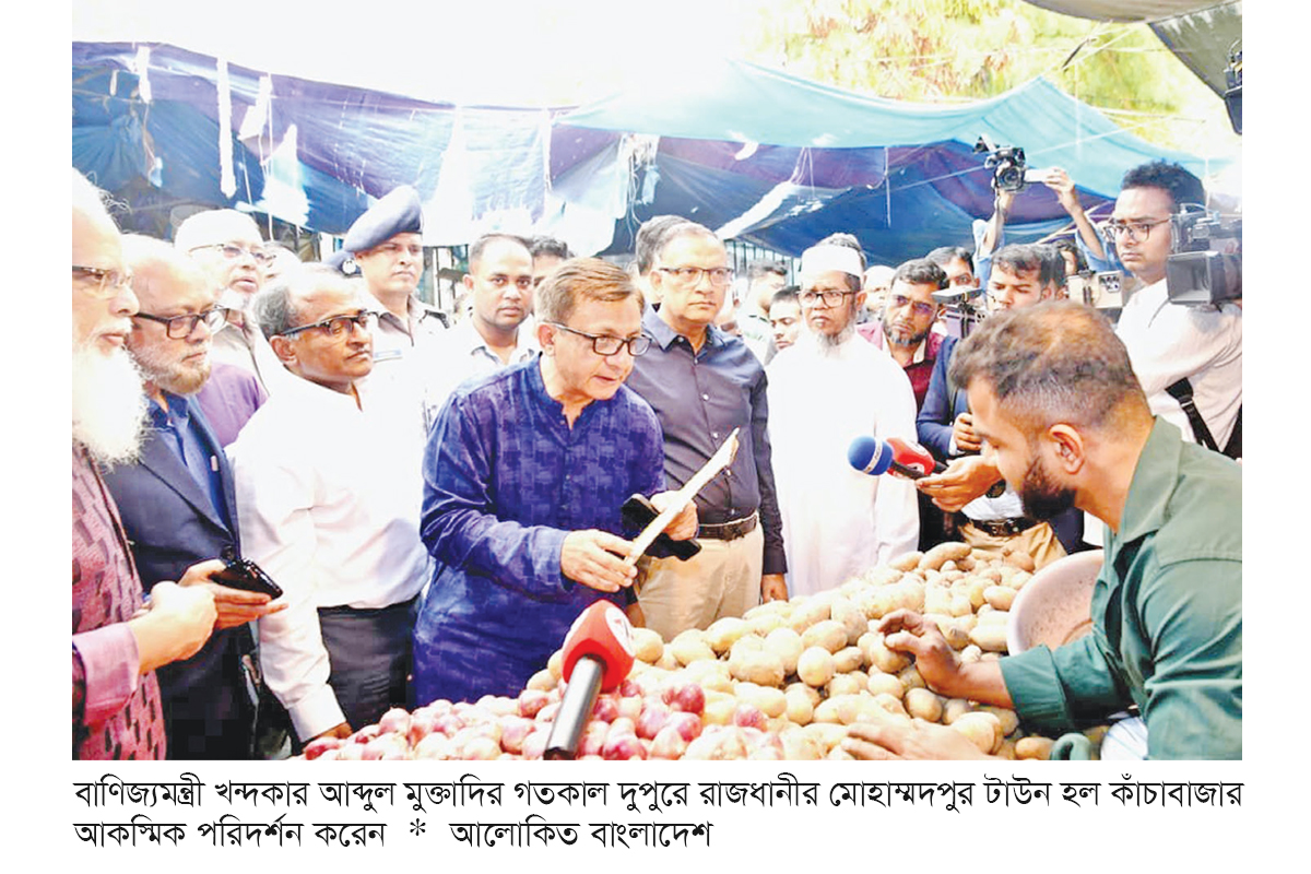 বাণিজ্যমন্ত্রী খন্দকার আব্দুল মুক্তাদির বলেছেন, বাজারে পণ্যের পর্যাপ্ত সরবরাহ রয়েছে এবং খুব শিগগির বাজার ব্যবস্থাপনায় ইতিবাচক পরিবর্তন আসবে। কিছু মানুষ রমজান মাসের সুযোগ নেওয়ার চেষ্টা করছে। দাম বাড়ানোর কারসাজিতে জড়িতদের বিরুদ্ধে আইন তার নিজের গতিতে চলবে। গতকাল সোমবার রাজধানীর মোহাম্মদপুরের টাউনহল বাজার পরিদর্শনে গিয়ে সাংবাদিকদের প্রশ্নের জবাবে এসব কথা বলেন খন্দকার আব্দুল মুক্তাদির। পরিদর্শনকালে তার সঙ্গে শরীফুল আলম এবং বাণিজ্য মন্ত্রণালয়ের সচিব মাহবুবুর রহমান উপস্থিত ছিলেন। এ সময় রমজান মাসে বাজারের সরবরাহ পরিস্থিতি পর্যবেক্ষণ করে এবং বিভিন্ন পণ্যের দাম নিয়ে ক্রেতা ও বিক্রেতাদের সঙ্গে কথা বলে বাণিজ্য মন্ত্রণালয়ের একটি দল।