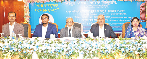 গতকাল সোমবার জনতা ব্যাংক পিএলসি’র ঢাকা দক্ষিণ বিভাগীয় কার্যালয়ের শাখা ব্যবস্থাপক সম্মেলন স্থানীয় একটি হোটেলের সম্মেলন কক্ষে অনুষ্ঠিত হয়। সম্মেলনে প্রধান অতিথি হিসেবে উপস্থিত ছিলেন ব্যাংকের চেয়ারম্যান মুহ. ফজলুর রহমান। সম্মানিত অতিথি হিসেবে ব্যাংকের ব্যবস্থাপনা পরিচালক মো. মজিবর রহমান, উপব্যবস্থাপনা পরিচালক কাজী আব্দুর রহমান এবং ফয়েজ আলম উপস্থিত ছিলেন। ঢাকা দক্ষিণ বিভাগীয় কার্যালয়ের মহাব্যবস্থাপক রুহিয়া আখতারের সভাপতিত্বে বিভাগীয় কার্যালয়ের এরিয়া প্রধানসহ সংশ্লিষ্ট নির্বাহী এবং শাখা ব্যবস্থাপক সম্মেলনে অংশগ্রহণ করেন। সম্মেলনে ব্যাংকের চেয়ারম্যান মুহ. ফজলুর রহমান ঋণ দেওয়ার আগে গ্রাহকের ঋণ পরিশোধের মানসিকতা আছে কি না, তা দেখে ভালো গ্রাহকদের মধ্যে ঋণ বিতরণের নির্দেশনা দেন। সূত্র : সংবাদ বিজ্ঞপ্তি