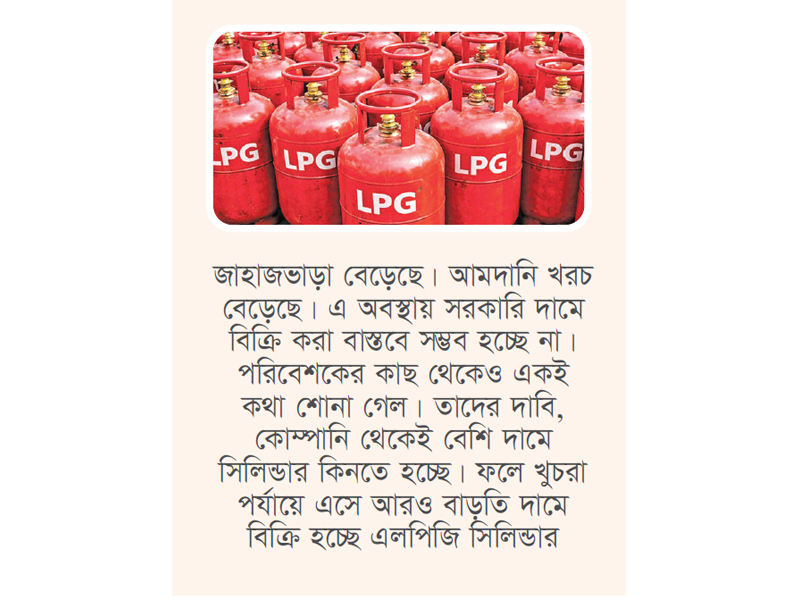 সরকারের বেঁধে দেওয়া দামে মিলছে না এলপিজি সিলিন্ডার। ১২ কেজির একটি এলপিজি সিলিন্ডারের সরকারি দাম ১ হাজার ৭২৮ টাকা। প্রয়োজনের তাগিদে অতিরিক্ত ২৭২ টাকা বেশি দিয়ে সিলিন্ডার কিনছেন গ্রাহকরা। চট্টগ্রাম নগরের বেশ কয়েকজন বাসিন্দা অভিযোগ করেন, সরকারি দামে কেউ সিলিন্ডার বিক্রি করছেন না। ২ এপ্রিল বাংলাদেশ এনার্জি রেগুলেটরি কমিশন (বিইআরসি) নতুন দাম ঘোষণা করে। প্রতি কেজিতে ৩২ টাকা ৩০ পয়সা বাড়ানো হলেও সেই দামে সিলিন্ডার মিলছে না­- এমন অভিযোগ সামাজিক যোগাযোগমাধ্যমেও ছড়িয়ে পড়ে। অভিযোগের বাস্তবতা যাচাই করতে নগরের হিলভিউ, টেকনিক্যাল মোড়, ষোলশহর, উত্তর কাট্টলি, এনায়েতবাজার ও ২ নম্বর গেট এলাকায় কয়েকটি বড় দোকান ঘুরে দেখা যায়, ১২ কেজির সিলিন্ডার বিক্রি হচ্ছে ১ হাজার ৮৫০ থেকে ২ হাজার ১০০ টাকা পর্যন্ত। অর্থাৎ নির্ধারিত দামের চেয়ে ১২২ থেকে ৩৭২ টাকা পর্যন্ত বেশি নিচ্ছেন বিক্রেতারা। ষোলশহরের একটি দোকানে দাঁড়িয়ে ক্রেতাদের সঙ্গে কথা বলতে বলতেই নিজের অবস্থার কথা তুলে ধরেন বিক্রেতা মো. সাহাব উদ্দিন। তিনি বলেন, ‘আমরা ইচ্ছা করে বাড়তি নিচ্ছি না। পরিবেশকের কাছ থেকেই বেশি দামে কিনতে হচ্ছে। না হলে সরকারি দামে বিক্রি করতে আপত্তি কোথায়?’