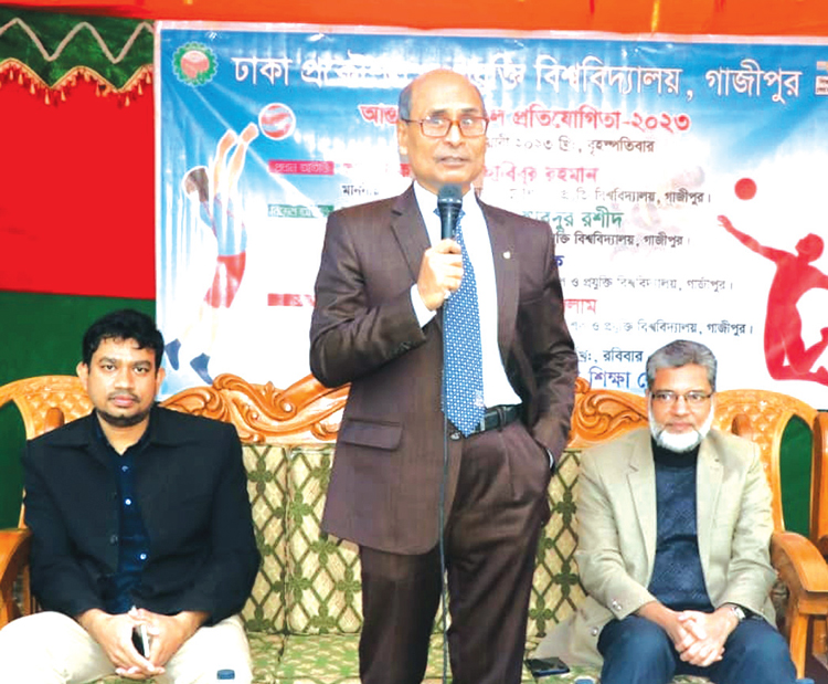 গাজীপুরে ঢাকা প্রকৌশল ও প্রযুক্তি বিশ্ববিদ্যালয়ে (ডুয়েট) গত বৃহস্পতিবার বিশ্ববিদ্যালয়ের ক্যাম্পাসে আন্তঃহল ভলিবল প্রতিযোগিতা শুরু হয়েছে। উদ্বোধন করেন অনুষ্ঠানের প্রধান অতিথি বিশ্ববিদ্যালয়ের উপাচার্য অধ্যাপক ড. এম হাবিবুর রহমান। এ সময় তিনি বলেন, শিক্ষার্থীদের লেখাপড়ার পাশাপাশি খেলাধুলা একান্তভাবে দরকার। আমাদের শিক্ষার্থীরা যত বেশি খেলাধুলার সঙ্গে সম্পৃক্ত হতে পারবে, সংস্কৃতি চর্চার সঙ্গে সম্পৃক্ত হতে পারবে, সাহিত্য চর্চা করবে, ততই শারীরিক, মানসিক সব দিক থেকেই তাদের মধ্যে একটা আলাদা মানসিকতা, নেতৃত্ব ও দেশপ্রেম গড়ে উঠবে। তিনি আরো বলেন, স্বাধীনতা অর্জনের পর সর্বকালের সর্বশ্রেষ্ঠ বাঙালি জাতির পিতা বঙ্গবন্ধু শেখ মুজিবুর রহমান অন্যান্য ক্ষেত্রে উন্নয়নের পাশাপাশি দেশের ক্রীড়াঙ্গনকেও সমান গুরুত্ব দিয়েছিলেন। তার ধারাবাহিকতায় বর্তমান সরকারের নিবিড় প্রচেষ্টায় বাংলাদেশের ক্রীড়াঙ্গনে সফলতা উত্তরোত্তর বৃদ্ধি পেয়েছে। এছাড়া তিনি বঙ্গবন্ধুর আদর্শ ও দর্শনে দীক্ষিত হয়ে মাননীয় প্রধানমন্ত্রী জননেত্রী দেশরত্ন শেখ হাসিনার নেতৃত্বে উন্নত বাংলাদেশ গড়ার লক্ষ্যে সবাইকে ঐক্যবদ্ধভাবে কাজ করার আহ্বান জানান। তিনি ১৫ আগস্টে জাতির পিতা বঙ্গবন্ধু শেখ মুজিবুর রহমান ও বঙ্গমাতা শেখ ফজিলাতুন্নেছা মুজিব ও তাদের পরিবারের শাহাদাত বরণকারী সদস্যদের প্রতি গভীর শ্রদ্ধাসহ জাতীয় চার নেতা এবং মুক্তিযুদ্ধে সব শহীদদের প্রতি বিনম্র শ্রদ্ধা জানান। বিশ্ববিদ্যালয়ের শারীরিক শিক্ষা কেন্দ্রের পরিচালক অধ্যাপক ড. মো. নজরুল ইসলামের সভাপতিত্বে উদ্বোধনী অনুষ্ঠানে আরো বক্তব্য রাখেন কাজী নজরুল ইসলাম হলের প্রভোস্ট অধ্যাপক ড. উৎপল কুমার দাস। বিশ্ববিদ্যালয়ের বিভিন্ন হলের মধ্যে গ্রুপভিত্তিক এই প্রতিযোগিতার ফাইনাল খেলা আগামী ১৫ জানুয়ারি অনুষ্ঠিত হবে। অনুষ্ঠানে বিশ্ববিদ্যালয়ের শিক্ষক, শিক্ষার্থী, কর্মকর্তা ও কর্মচারীরা উপস্থিত ছিলেন।
