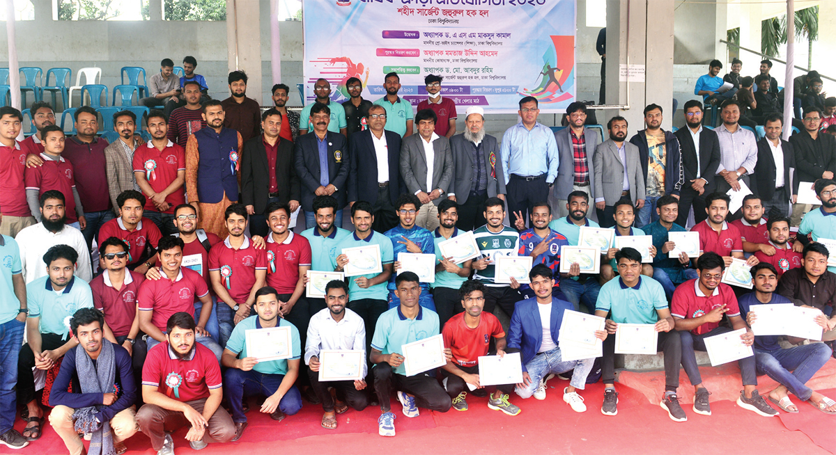 ঢাকা বিশ্ববিদ্যালয় শহীদ সার্জেন্ট জহুরুল হক হলের বার্ষিক ক্রীড়া প্রতিযোগিতায় যৌথভাবে চ্যাম্পিয়ন হয়েছেন গণযোগাযোগ ও সাংবাদিকতা বিভাগের স্নাতক (সম্মান) ৪র্থ বর্ষের শিক্ষার্থী শাহীন আলম এবং ব্যাংকিং এন্ড ইন্স্যুরেন্স বিভাগের স্নাতক (সম্মান) ৪র্থ বর্ষের শিক্ষার্থী মো. আলমগীর হোসেন। যৌথভাবে রানার্সআপ হয়েছে লেদার ইঞ্জিনিয়ারিং এন্ড টেকনোলজি ইনস্টিটিউটের মাস্টার্সের শিক্ষার্থী সাজিন আহমেদ ও সমাজবিজ্ঞান বিভাগের স্নাতক (সম্মান) ৪র্থ বর্ষের শিক্ষার্থী তুষার আহমেদ। কেন্দ্রীয় খেলার মাঠে শহীদ সার্জেন্ট জহুরুল হক হলের প্রাধ্যক্ষ অধ্যাপক ড. মো. আবদুর রহিমের সভাপতিত্বে প্রো-ভাইস চ্যান্সেলর (শিক্ষা) অধ্যাপক ড. এএসএম মাকসুদ কামাল উদ্বোধন করেন ও কোষাধ্যক্ষ অধ্যাপক মমতাজ উদ্দিন আহমেদ বিজয়ীদের পুরস্কৃত করেন। উপস্থিত ছিলেন বিশ্ববিদ্যালয়ের অ্যাথলেটিকস কমিটির সভাপতি অধ্যাপক ড. এমরান কবির চৌধুরী, শিক্ষক সমিতির সভাপতি অধ্যাপক ড. মো. নিজামুল হক ভূঁইয়া ও সাধারণ সম্পাদক অধ্যাপক ড. জিনাত হুদা, জহুরুল হক হল ক্রীড়া কমিটির আহ্বায়ক অধ্যাপক ড. মো. রফিকুল ইসলাম।