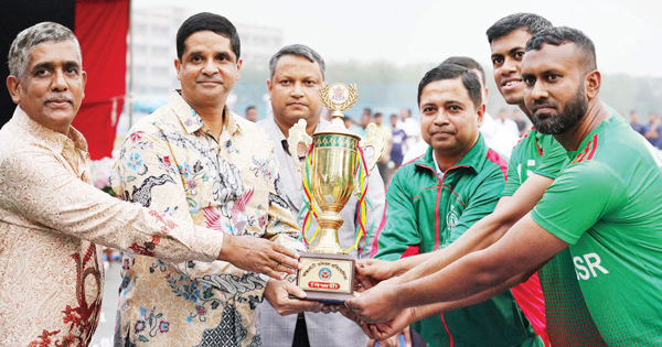 বাংলাদেশ বিমান বাহিনীর আন্তঃঘাঁটি ভলিবল প্রতিযোগিতাণ্ড২০২৩ এর সমাপনী ও পুরস্কার বিতরণী অনুষ্ঠান গতকাল বৃহস্পতিবার ঢাকাস্থ বাংলাদেশ বিমান বাহিনী ঘাঁটি বঙ্গবন্ধুর ভলিবল মাঠে অনুষ্ঠিত হয়েছে। ফাইনালে বিমান বাহিনী ঘাঁটি বাশার দল ৩-২ সেটে বিমান বাহিনী ঘাঁটি বীরশ্রেষ্ঠ মতিউর রহমান দলকে হারিয়ে চ্যাম্পিয়ন হয়েছে। প্রতিযোগিতায় অনবদ্য নৈপুণ্য প্রদর্শনের জন্য বিমান বাহিনী ঘাঁটি বীরশ্রেষ্ঠ মতিউর রহমান দলের কর্পোরাল শিমুল শ্রেষ্ঠ খেলোয়াড় বিবেচিত হন। সমাপনী অনুষ্ঠানে সহকারী বিমান বাহিনী প্রধান (পরিকল্পনা) এয়ার ভাইস মার্শাল হাসান মাহমুদ খান বিজয়ীদের পুরস্কৃত করেন। ৫ দিনব্যাপী এ প্রতিযোগিতায় বাংলাদেশ বিমান বাহিনীর ০৭টি দল অংশগ্রহণ করে।