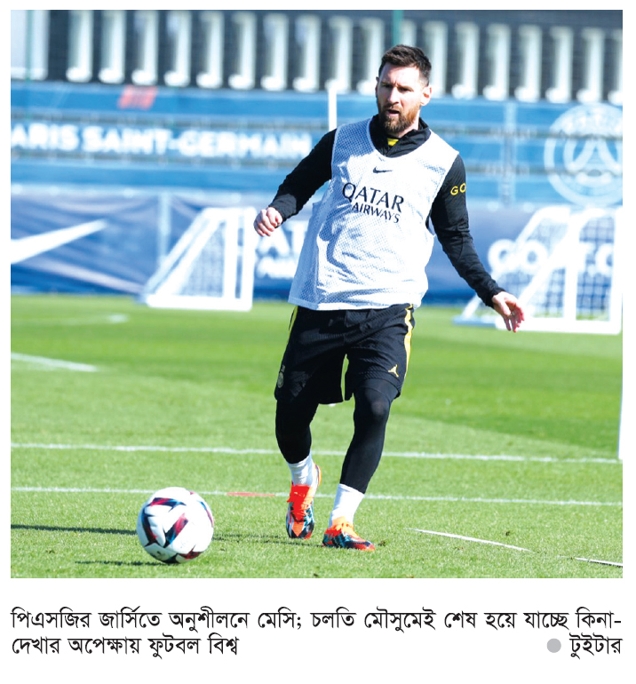 পিএসজির সঙ্গে মেসির বর্তমান চুক্তির মেয়াদ শেষ হবে আগামী ৩০ জুন। এরপরই ফ্রি এজেন্ট হয়ে যাবেন। বার্সেলোনা চেষ্টা করছে ঘরের ছেলেকে ফিরিয়ে নিতে। যুক্তরাষ্ট্রের ক্লাব ইন্টার মিয়ামিও নাকি আগ্রহী মেসির প্রতি। আর সৌদি আরবের আল হিলালের আগ্রহী হয়ে ওঠার খবর কদিন আগেও স্রেফ গুঞ্জন বলে উড়িয়ে দেওয়া হয়েছে। কিন্তু সেটি এখন আর গুঞ্জন নয়। ইতালিয়ান সংবাদকর্মী ফ্যাব্রিজিও রোমানো বুধবার টুইটে জানিয়েছেন, আর্জেন্টাইন অধিনায়ককে পেতে ৪০ কোটি ইউরোর প্রস্তাব দিয়েছে আল হিলাল। বাংলাদেশি মুদ্রায় সাড়ে ৪ হাজার কোটি টাকারও বেশি।