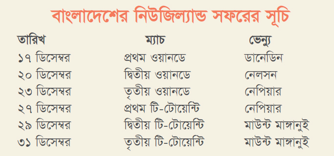 ডিসেম্বরে বাংলাদেশের নিউজিল্যান্ড সফরের সূচি প্রকাশ