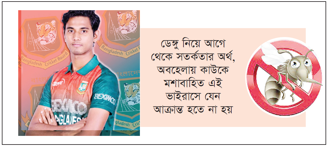 যে কারণে জাতীয় দলের প্রস্তুতি ক্যাম্পে যোগ দিতে পারেননি তিনি। এডিস মশা প্রতিরোধে প্রস্তুতিও নিয়েছে বাংলাদেশ ক্রিকেট বোর্ড (বিসিবি)। একটি ডেঙ্গু কমিটিও গঠন করেছে দেশের ক্রিকেটের নিয়ন্তা সংস্থা। হোয়াটসঅ্যাপে কমিটির সদস্যদের নিয়ে খোলা গ্রুপের নাম ‘বিসিবি ডেঙ্গু কমিটি’। বিসিবির বিভিন্ন কমিটি থেকে এখানে জনবল যুক্ত করা হয়েছে। স্বাভাবিকভাবে বিসিবির মেডিকেল টিমও আছে এই কমিটিতে। কমিটির মূল পরিচালনাা ভার দেয়া হয়েছে বিসিবির ফ্যাসিলিটিজ বিভাগকে।