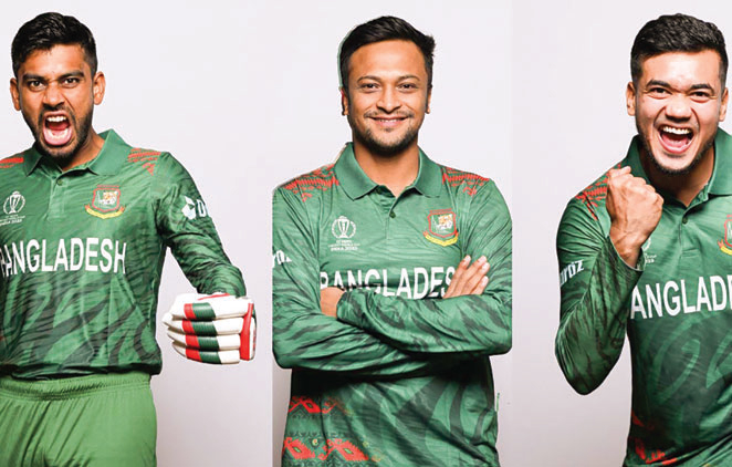 এবারের বিশ্বকাপে বাংলাদেশের বড় স্বস্তির নাম শক্তিশালী পেস ইউনিট। তাসকিনদের গতি আর বাউন্সে প্রতিপক্ষকে ধরাশায়ী করার অপেক্ষা। পোস্টটিতে সাকিব আল হাসান, মেহেদী মিরাজ, তাসকিন আহমেদ এবং হাসান মাহমুদের ছবি আপলোড করেছে আইসিসি। চারজনই ছিলেন বাংলাদেশের বিশ্বকাপ জার্সি পরিহিত অবস্থায়।
