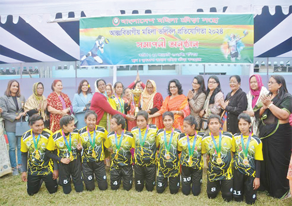 বাংলাদেশ মহিলা ক্রীড়া সংস্থার আয়োজনে আন্ত:বিভাগীয় মহিলা ভলিবল টুর্নামেন্টে চ্যাম্পিয়ন হয়েছে পাবনা। গতকাল শনিবার ধানমন্ডির সুলতানা কামাল মহিলা ক্রীড়া কমপ্লেক্সে অনুষ্ঠিত ফাইনালে তারা ২-০ সেটে রংপুরকে হারিয়ে শিরোপা জিতে নেয়। খেলা শেষে বিজয়ীদের হাতে পুরস্কার তুলে দেন সংস্থার সভানেত্রী মাহাবুব আরা বেগম গিনি। এ সময় ভারপ্রাপ্ত সাধারণ সম্পাদিকা প্রকৌশলী ফিরোজা করিম নেলী উপস্থিত ছিলেন। ১৩ জেলার প্রায় দেড় শতাধিক খেলোয়াড়ের এই প্রতিযোগিতায় অংশ নেন।