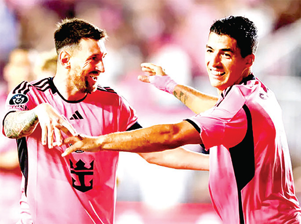 মেজর লিগ সকারের (এমএলএস) ম্যাচে বড় জয় পেয়েছে ইন্টার মায়ামি। হ্যাটট্রিক উপহার দিলেন লুইস সুয়ারেস। জোড়া গোল করেছেন মাতিয়াস রোজাস। তবে তাদের ছাপিয়ে নায়ক আরো একবার যথারীতি লিওনেল মেসি। দলের ছয়টি গোলে যে অবদান তার! মেসি একটি গোল করার পাশাপাশি দুটি রেকর্ড গড়েছেন। বাংলাদেশ সময় গতকাল রোববার সকালে শেষ ম্যাচে নিউইয়র্ক রেড বুলসকে বিধ্বস্ত করে ইন্টার মায়ামি। এই ম্যাচের আগে টানা ছয় ম্যাচে অপরাজিত থাকা দলটিকে মেসি-সুয়ারেসরা গুঁড়িয়ে দেন ৬-২ গোলে। ইন্টার মায়ামির জার্সিতে প্রথমবার হ্যাটট্রিকের স্বাদ পান সুয়ারেস। মাতিয়াস রোহাস করেন দুটি গোল। মেসি গোল করেন কেবল একটি। তবে সুয়ারেস-রোহাসের পাঁচ গোলেই আছে তার ছোঁয়া। এক ম্যাচে পাঁচ অ্যাসিস্ট মেজর লিগ সকারের রেকর্ড। সব মিলিয়ে চলতি লিগে ৮ ম্যাচে ১০ গোল হয়ে গেল মেসির, পাশাপাশি সহায়তা করেছেন তিনি ১২ গোলে। মেসি চোটের কারণে বাইরে থাকার সময়টায় গত মার্চে মায়ামিকে ৪-০ গোলে উড়িয়ে দিয়েছিল রেড বুলস। ফিরতি এই ম্যাচেও প্রথমার্ধে তারা এগিয়ে ছিল ১-০ গোলে। যদিও বল পায়ে রাখার লড়াইয়ে অনেকটা এগিয়ে ছিল মায়ামিই। কিন্তু ৩০তম মিনিটে এগিয়ে যায় রেড বুলস। দ্বিতীয়ার্ধের শুরু থেকেই রেড বুলসের ওপর যেন ঝাঁপিয়ে পড়ে মায়ামি। দাভিদ রুইসের বদলে মাঠে নেমেই ম্যাচের চিত্র বদলে দেন রোহাস। ৪৮তম মিনিটে দুর্দান্ত গোলে দলকে সমতায় ফেরান তিনি। মেসির কাছ থেকে বল পেলেও কৃতিত্ব বলা যায় সবটুকুই প্যারাগুয়ের এই ফুটবলারের। বক্সের অনেকটা বাইরে ডান পাশ থেকে আলতো টোকায় বল বাড়িয়ে দেন মেসি। রোহাস বল ধরে দুই পা এগিয়ে বক্সের বেশ বাইরে থেকেই আচমকা শট নেন। বাঁ পায়ের তীব্র গতির শট আশ্রয় নেয় জালে। দুই মিনিট পরই এগিয়ে যায় মায়ামি। এবার বক্সের বাইরে বাঁ পাশ থেকে বল এগিয়ে দেন রোহাস। সেটি ধরে মেসির দিকে বাড়িয়ে দেন সুয়ারেস। প্রতিপক্ষের দুই ডিফেন্ডারের চ্যালেঞ্জ ছিটকে বাঁ পায়ের শটে গোল করেন মেসি। এই নিয়ে টানা সাতটি লিগ ম্যাচে গোল করলেন আর্জেন্টিনার বিশ্বকাপজয়ী তারকা। মায়ামির পরের গোলটি আসে মেসির দৃষ্টিনন্দন পাস থেকে। ৬২তম মিনিটে তিন ডিফেন্ডারের মাঝ দিয়ে চমৎকারভাবে বল বক্সের ভেতর বাড়িয়ে দেন তিনি। রোহাস ছিলেন জায়গামতো। বল ধরে আগুয়ান গোলকিপারের ওপর দিয়ে দারুণ চিপ শটে জালে পাঠান তিনি। এরপর ১৩ মিনিটের মধ্যে সুয়ারেসের তিন গোল। এর প্রথমটিতেও দুর্দান্ত পাস দেন মেসি। বক্সের ডান প্রান্ত থেকে একটু এগিয়ে দুই ডিফেন্ডারের মাঝ দিয়ে ও সামনে থাকা আরেক ডিফেন্ডারকে ফাঁকি দিয়ে ক্রস করেন তিনি। ভলির মতো করে দারুণ ফিনিশিংয়ে গোলের দেখা পান সুয়ারেস। পরের গোলে মেসি মাঝমাঠ থেকে বল নিয়ে এগিয়ে যান সামনে। 