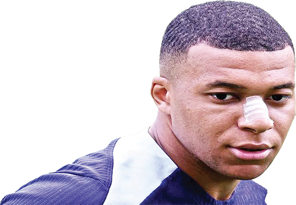 নাকে প্লাস্টার লাগিয়ে অনুশীলনে এমবাপে