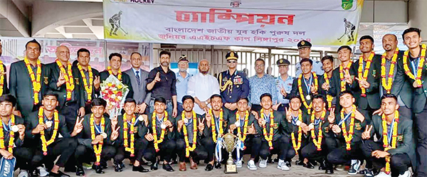 আষাঢ়ে দুপুর। রৌদ্রের খরতাপ। এর মধ্যেই ইউএস-বাংলা এয়ারলাইন্সে করে হযরত শাহজালাল আন্তর্জাতিক বিমানবন্দরে এসে পৌঁছেন এএইচএফ কাপে চ্যাম্পিয়ন ছেলে ও রানার্সআপ মেয়েরা। ছেলেদের হাতে চ্যাম্পিয়ন ট্রফি থাকলেও মেয়েদের গলায় ছিল রানার্সআপের মেডেল। বিমানবন্দরেই দেশের মুখ উজ্জ্বল করা এই ছেলে-মেয়েদের ফুল দিয়ে বরণ করে নেন হকি ফেডারেশনের নতুন সভাপতি ও বিমান বাহিনী প্রধান এয়ার মার্শাল হাসান মাহমুদ খান। নিজ হাতে মিষ্টি মুখও করান তিনি। দায়িত্ব নেওয়ার পরই এমন সাফল্যকে প্রেরণা হিসাবেই দেখছেন বিমান বাহিনী প্রধান, ‘আমার জন্য এই ট্রফি অনেকটা উপহারের মতোই। ভবিষ্যতে হকিকে যেন এগিয়ে নিতে পারি, এই পাওয়া আমাকে উদ্বুদ্ধ করেছে। ভবিষ্যতে হকির উন্নয়নে আমার পক্ষ থেকে সর্বাত্মক সহায়তা থাকবে।’ তিনি যোগ করেন, ‘এই খেলোয়াড়রাই আমাদের ভবিষ্যৎ। এদের অনেকেই সিনিয়র দলে খেলবে ভবিষ্যতে। আমরা তাদের আরো উন্নত অনুশীলন ও ম্যাচ খেলার ব্যবস্থা করব।’ এবারের টুর্নামেন্টে বড় প্রাপ্তি মেয়েদের জুনিয়র এশিয়া কাপ খেলার সুযোগ। দলটির ম্যানেজার ও ফেডারেশনের সদস্য তারিকউজ্জামান নান্নু বলেন, ‘মেয়েরা যেন নিয়মিত টুর্নামেন্ট খেলতে পারে ও অনুশীলনের মধ্যে থাকতে পারে সেই ব্যবস্থাই সভাপতি করবেন বলে জানিয়েছেন।’