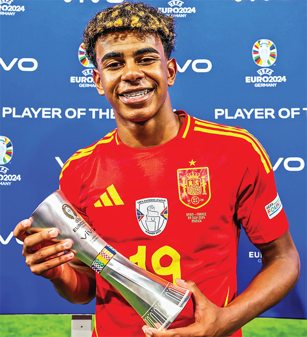ইউরো চ্যাম্পিয়নশিপের সেমিফাইনালে ফ্রান্সের বিপক্ষে প্রতিভার ঝলক দেখল ফুটবল বিশ্ব। গোল করলেন। বার বার সুযোগ তৈরি করলেন। ইউরোর ইতিহাসে সর্বকনিষ্ঠ গোলদাতা হওয়ার নজির গড়লেন লামিনে ইয়ামাল। ১৬ বছরের এই কিশোর বুঝিয়ে দিলেন, শুধুমাত্র প্রতিভা হয়ে থাকতে আসেননি। আগামী বেশ কয়েক বছর শাসন করতে চান ফুটবল বিশ্বকে। তার কাছে এটি স্বপ্ন সত্যি হওয়ার মতোই। আসরজুড়ে দুর্দান্ত খেলা ইয়ামাল সেমি-ফাইনালে আরো এক ধাপ ছাড়িয়ে যান নিজেকে। দুর্দান্ত এক গোল করে ফ্রান্সের বিপক্ষে সমতায় ফেরান তিনি দলকে। ইউরো ও বিশ্বকাপের ইতিহাস মিলিয়ে প্রথমবার গোল করলেন কোনো ১৬ বছর বয়সি ফুটবলার।