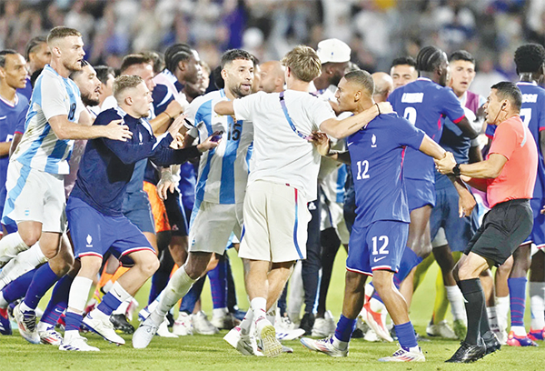 উত্তেজনার ম্যাচে আর্জেন্টিনার অলিম্পিকস পদক জয়ের স্বপ্ন ভেঙে চরম প্রতিশোধ নিয়েছে ফ্রান্স। শেষ বাঁশি বাজার পর পরিস্থিতি হয়ে উঠল ভীষণ উত্তপ্ত। দুই দলের ফুটবলাররা প্রথমে বাকবিতণ্ডা ও পরে হাতাহাতিতে জড়িয়ে পড়লেন।