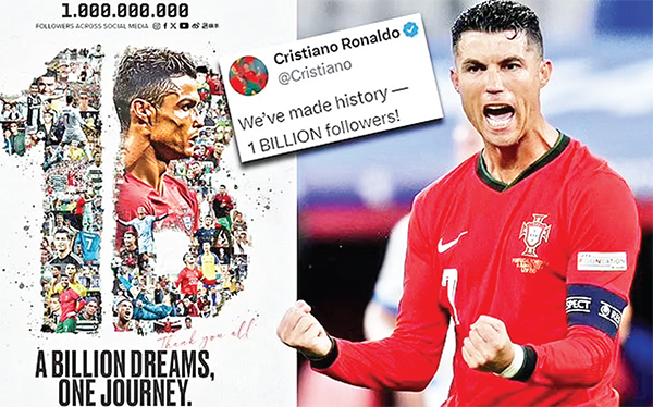 কয়েকদিন আগে ক্যারিয়ারের ৯০০তম গোলের মাইলফলক ছোঁন ক্রিস্টিয়ানো রোনালদো। এবার সামাজিক যোগাযোগমাধ্যমেও গড়লেন বিশ্ব রেকর্ড। বিশ্বের প্রথম ব্যক্তি হিসেবে সব সোশ্যাল মিডিয়া প্ল্যাটফর্ম মিলে ১ বিলিয়ন বা একশ কোটি ফলোয়ারের মালিক হয়েছেন তিনি। ইনস্টাগ্রামে রোনালদোর ফলোয়ার ৬৩ কোটি ৯০ লাখ। এক্স-এ তার অনুসারী ১১ কোটি ৩০ লাখ এবং ১৭ কোটি ৫ লাখ ফেসবুকে। গত ২১ আগস্ট ইউটিউবে ‘ইউআর ক্রিস্টিয়ানো’ নামের চ্যানেল খুলে ৯০ মিনিটের মধ্যে ১০ লাখ সাবস্ক্রাইবার পেয়েছিলেন, যা বেড়ে ৫ কোটি হতে একসপ্তাহও লাগেনি। বর্তমানে তা ৬ কোটি ৬ লাখে ঠেকেছে। এ ছাড়া চীনা প্ল্যাটফর্ম কুয়াইশো ও ওয়েইবোতেও তার লাখ লাখ ফলোয়ার আছে। সামাজিক মাধ্যমের সাতটি প্ল্যাটফর্ম মিলিয়ে ১ বিলিয়ন অনুসারী পূর্ণ হওয়ার পরই গত বৃহস্পতিবার ভক্তদের খুশির খবরটি জানান সিআরসেভেন। এ জন্য তিনি সব পর্যায়ের সমর্থক ও শুভাকাঙ্ক্ষীদের প্রতি কৃতজ্ঞতাও জানিয়েছেন। আল-নাসর তারকার সবচেয়ে বেশি অনুসারী ইনস্টাগ্রামে, ৬৩৮ মিলিয়ন। এ ছাড়া ফেসবুকে ১৭০ এবং এক্স (সাবেক টুইটার) একাউন্টে তাকে ১১৩ মিলিয়ন মানুষ অনুসরণ করছে। এ তো গেল এক ধারার প্ল্যাটফর্ম। আগস্টের তৃতীয় সপ্তাহে ভিডিও প্ল্যাটফর্ম ইউটিউবে চ্যানেল নিয়ে হাজির হন রোনালদো, যদিও তার সেই একাউন্টটি খোলা হয় চলতি বছরের ৮ জুলাই। পরে ২১ আগস্ট ‘ইউআর’ নামে সংক্ষিপ্ত টাইটেলে খোলা চ্যানেলটিকে অনুসরণের ঘোষণা দিতেই ৯০ মিনিটে ১ মিলিয়ন সাবস্ক্রাইবার হয়ে গেছে। এমন মাইলফলক ইউটিউবের ইতিহাসে সবচেয়ে দ্রুততম বলে উল্লেখ করেছে ফোর্বস। ক্রমাগত বাড়তে থাকা সেই চ্যানেলে এখন রোনালদোর অনুসারী সাড়ে ৬০ মিলিয়ন ছাড়িয়ে গেছে। মূলত ইউটিউবে বাড়তে থাকা অনুসারীর কল্যাণেই সাবেক এই রিয়াল মাদ্রিদ তারকা এক বিলিয়নের মাইলফলক পূর্ণ করেছেন। বিশ্বের প্রথম কোনো ব্যক্তি হিসেবে এই ইতিহাস গড়ার বিষয়টি নিজের ইনস্টাগ্রামের এক পোস্টে জানান দিয়েছেন রোনালদো। সেখানে তিনি লেখেন, ‘আমরা ইতিহাস সৃষ্টি করেছি— ১ বিলিয়ন ফলোয়ার্স! এটি শুধু কোনো সংখ্যা নয়, তার চেয়েও বেশি কিছু। এটি আমাদের গভীর আবেগ, উদ্যম এবং খেলা ও বাইরের বিষয়ের প্রতি ভালোবাসার স্বীকৃতি।’ তিনি আরো লিখেছেন, ‘মাদেইরার (পর্তুগালে রোনালদোর জন্মস্থান) রাস্তা থেকে বিশ্বের সবচেয়ে বড় মঞ্চে এসে আমি আমার পরিবার, আপনাদের জন্য খেলেছি। যা আমরা একসঙ্গে বর্তমানে ১ বিলিয়নে পরিণত করেছি। প্রতিটি পদে পদে আপনারা আমার সঙ্গে ছিলেন, উত্থান-পতনে সঙ্গী হয়েছেন। এই জার্নিটি সবাই মিলে একসঙ্গে হয়েছে, আমরা দেখিয়েছি যে অর্জনের কোনো সুনির্দিষ্ট পরিসীমা থাকে না। আমার প্রতি এমন বিশ্বাস, সমর্থন ও জীবনের অংশ হয়ে যাওয়ার জন্য আপ