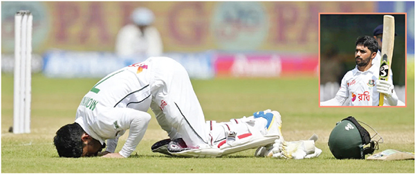 তাকে বলা হয় বাংলাদেশের টেস্ট স্প্যাশালিষ্ট। দেশের হয়ে সাদা পোশাকে সর্বোচ্চ সেঞ্চুরি তারই দখলে। এবার সেই সংখ্যা বাড়িয়ে কানপুরের গ্রিনপার্কে কিংবদন্তিদের সঙ্গে নাম লিখলেন মুমিনুল হক। সিরিজের দ্বিতীয় ও শেষ টেস্টের চতুর্থ দিনে রবিচন্দ্রন অশ্বিনের বলে বাউন্ডারি হাকিয়ে তিন অঙ্কের ম্যাজিক ফিগার স্পর্শ করেন তিনি। এর আগে এই অশ্বিনকেই ডাউন দ্য উইকেটে এসে মিড অফে দারুণ এক ছক্কায় পা দেন নব্বইয়ের ঘরে। নার্ভাস নাইন্টিজের শিকার হতে-হতেও হননি ঋষভ পন্ত-বিরাট কোহলির ব্যর্থতায়। দর্শকদের উল্লাস আর বাঁশির ফুঁতে মেতে ওঠে গ্রিনপার্ক। প্রথমবার ভারতের বিপক্ষে সেঞ্চুরি, বাংলাদেশের হয়ে সর্বোচ্চ সেঞ্চুরির (১৩) মালিক মুমিনুলের উচ্ছ্বাস অবশ্য বেশি ছিল না। বল বাউন্ডারির বাইরে যাওয়ার পর উইকেটের মাঝে এসে হেলমেট খোলেন, ব্যাট উপরে তোলেন এরপর মুমিনুল সেজদা দিয়ে উদযাপন করেন। ১৭২ বলে ক্যারিয়ারের ১৩তম সেঞ্চুরির দেখা পান এই বাঁহাতি ব্যাটার। কানপুরের ঐতিহাসিক স্টেডিয়ামে ১৯৪৫ থেকে এখন পর্যন্ত সেঞ্চুরি হয়েছে ৩৫টি। সর্বোচ্চ ৩টি সেঞ্চুরি ভারতীয় কিংবদন্তি ক্রিকেটার মোহাম্মদ আজহারউদ্দিনের। এই তালিকায় আছেন গ্যারি সোবার্স, ইয়ান বোথাম হতে শুরু করে কপিল দেব ও সুনীল গাভাস্কার। ২৭তম ক্রিকেটার হিসেবে মুমিনুল শতক হাঁকান ব্রিটিশ আমলে তৈরি ঐতিহ্যবাহী স্টেডিয়ামটিতে। মুমিনুলের সেঞ্চুরির ইনিংসটি সাজানো ছিল ১৬টি চার ও ১টি ছয়ের মারে। ফিফটি করেন ১১০ বলে। ফিফটির পর সেঞ্চুরি পেতে খরচ হয় মাত্র ৬২ বল! চতুর্থ দিনজুড়ে মুমিনুলকে দেখা গেছে আগ্রাসী রুপে। কখনো সুইপ, কখনো পুল আবার কখনো ডাউন দ্য উইকেটে এসে ছক্কা! বৃষ্টি বিঘ্নিত প্রথম দিন জাসপ্রীত বুমরাহকে এক দুর্দান্ত কাভার ড্রাইভে শাসনের শুরু। এক শটেই যেন ইঙ্গিত দিয়ে রেখেছিলেন লম্বা ইনিংসের। শেষ পর্যন্ত তাই হলো। ৪০ রানে প্রথম দিন শেষ করেন। এরপর দুদিন কেটে যায় বৃষ্টিতে। তবে মুমিনুল যেন ছিলেন সেদিনের ফর্মেই! অথচ ইনিংসের শুরুটা ছিল কিছুটা নড়বড়ে। প্রথম ১৩ বলে কোনো রান আসেনি। এরপর ধীরে ধীরে এগোতে থাকেন। নাটাই নিয়ে নেন নিজের হাতে। এক প্রান্তে আগলে রাখলেও অপর প্রান্তে ছিল না স্থিরতা। সতীর্থরা ছিলেন আসা যাওয়ার মিছিলে। সর্বোচ্চ ৫১ রানের জুটি আসে নাজমুল হোসেন শান্তর সঙ্গে। মাঝে ফেরেন মুশফিকুর রহিম (১১), লিটন দাস (১৩) ও সাকিব আল হাসান (৯)। এর আগে শুরুতেই ফিরেছিলেন সাদমান ইসলাম (২৪)। সেঞ্চুরির দেখা পান মেহেদি হাসান মিরাজের সঙ্গে জুটিতে। ভারতের বিপক্ষে প্রথম হলেও দেশের বাইরে এটি মুমিনুলের দ্বিতীয় সেঞ্চুরি। এর আগে শ্রীলঙ্কার বিপক্ষে দেশটির মাটিতে ১২৭ রানের ইনিংস খেলেছেন। এই সেঞ্চুরির আগে সবশেষ শতক ছিল ২০২৩ সালের জুনে