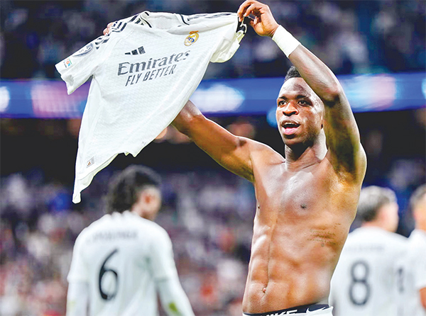 নতুন ফরম্যাটের উয়েফা চ্যাম্পিয়ন্স লিগে আগের ম্যাচে অঘটনের শিকার হয়েছিল রিয়াল মাদ্রিদ। লিলের কাছে হেরে যাওয়াটা ছিল বড্ড বেমানান। ঘুরে দাঁড়ানোর মঞ্চ হিসেবে সান্তিয়াগো বার্নাব্যুকে পেয়েছিল তারা, কিন্তু ঘরের মাঠে আরো বড় ধাক্কা লাগে রিয়ালের গায়ে। ৩৪ মিনিটে পিছিয়ে পড়ে ২-০ গোলে। প্রথমার্ধে দুই গোল হজম করা রিয়াল দ্বিতীয়ার্ধে ঘুরে দাঁড়ালো অসাধারণ কায়দায়। হারের শঙ্কা উড়িয়ে চোখ ধাঁধানো পারফরম্যান্সে বরুশিয়া ডর্টমুন্ডকে স্রেফ তছনছ করে দিল তারা। ব্রাজিলিয়ান ফরোয়ার্ড ভিনিসিয়ুস জুনিয়রের দুর্দান্ত হ্যাটট্রিকে তুলে নিল বড় জয়। গত মঙ্গলবার রাতে ঘরের মাঠ সান্তিয়াগো বার্নাব্যুতে মঙ্গলবার রাতে ৫-২ গোলে ডর্টমুন্ডকে বিধ্বস্ত করেছে রিয়াল। আসরে তিন ম্যাচে প্রতিযোগিতার বর্তমান চ্যাম্পিয়নদের এটি দ্বিতীয় জয়। ভিএফবি স্টুটগার্টের বিপক্ষে নিজেদের মাটিতে জয়ের পর গত রাউন্ডে তারা লিলের মাঠে হেরে গিয়েছিল।