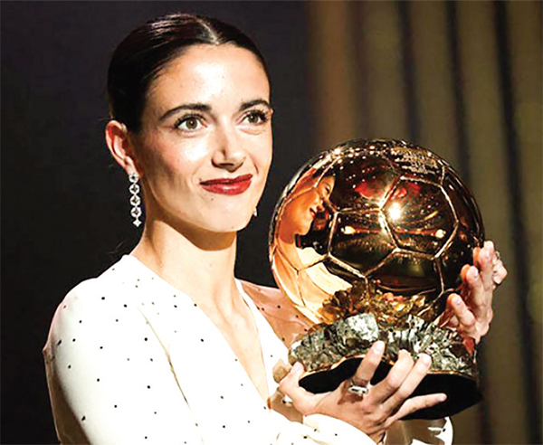 মেয়েদের ব্যালন ডি’অর জিতলেন স্পেন ও বার্সেলোনার মিডফিল্ডার আইতানা বোনমাতি। হলিউড অভিনেত্রী নাটালি পোর্টম্যানের কাছ থেকে ব্যালন ডি’অর ট্রফিটি নেন বোনমাতি। ভোটে দ্বিতীয় হন বার্সেলোনারই নরওয়ে উইঙ্গার ক্যারোলিন গ্রাহাম হ্যানসেন। তৃতীয়ও বার্সেলোনার, স্প্যানিশ উইঙ্গার সালমা পারালুয়েল্লো। গত ১৮ মাসে বিশ্বকাপ ও দুবার চ্যাম্পিয়ন্স লিগ জিতেছেন স্প্যানিশ ফুটবলার বোনমাতি। জয়ের পর তিনি বলেছেন, ‘সব সময় বলেছি এটা এমন কিছু যা একা করা অসম্ভব। দারুণ কিছু খেলোয়াড় আমার আশপাশে থাকায় নিজেকে সৌভাগ্যবান মনে করি। সতীর্থদের ধন্যবাদ তাদের ছাড়া এখানে আসতে পারতাম না।’ এদিকে, টানা দ্বিতীয়বার বর্ষসেরা গোলরক্ষকের পুরস্কার জিতলেন এমিলিয়ানো মার্টিনেজ। ইংলিশ প্রিমিয়ার লিগের ক্লাব অ্যাস্টন ভিলার হয়ে দুর্দান্ত সময় কাটিয়েছেন এমিলিয়ানো মার্টিনেজ। জাতীয় দলের জার্সিতেও তিনি অনবদ্য। লাতিন আমেরিকার ফুটবল শ্রেষ্ঠত্বের লড়াইয়ে ৬ ম্যাচের পাঁচটিতেই নিজেদের জাল অক্ষত রেখেছিলেন মার্টিনেজ। টাইব্রেকারেও দারুণ ভূমিকা রেখে জিতিয়েছেন। কোপা আমেরিকার শিরোপা ধরে রাখার পথে বড় অবদান রেখেছেন এই গোলরক্ষক। তারই স্বীকৃতি হিসেবে প্যারিসে গত সোমবার দিবাগত রাতে জমকালো ব্যালন ডি’অর অনুষ্ঠানে মার্টিনেজের হাতে তুলে দেয়া হয় সেরা গোলরক্ষকের পুরস্কার ‘ইয়াশিন ট্রফি’। অন্যদিকে, ছেলেদের বর্ষসেরা কোচ নির্বাচিত হয়েছেন রিয়াল মাদ্রিদের কোচ কার্লো আনচেলত্তি। আর মেয়েদের বর্ষসেরা কোচ নির্বাচিত হয়েছেন এমা হেইজ।