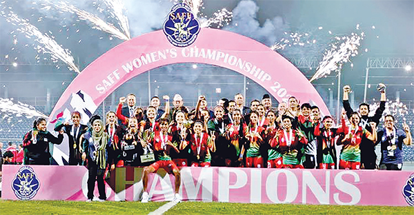 বাংলাদেশের নারী ফুটবল দল গত ৩০ অক্টোবর কাঠমান্ডুতে নেপালকে ২-১ গোলে হারিয়ে টানা দ্বিতীয়বারের মতো সাফ চ্যাম্পিয়নশিপ জেতে। নেপালে মেয়েদের সাফ ব্যস্ততার মধ্যে ২৬ অক্টোবর ঢাকায় বাফুফের নতুন কার্যনির্বাহী কমিটির নির্বাচন অনুষ্ঠিত হয়। তাবিথ আউয়ালের নেতৃত্বাধীন কমিটি কাল বাফুফে ভবনে প্রথম সভায় মিলিত হয়। সভার আলোচ্যসূচির মধ্যে অন্যতম ছিল মেয়েদের সাফ জয়। নেপালে সাফ জিতে ঢাকায় পৌঁছানোর পর বাংলাদেশের মেয়েদের দলটিকে বিমানবন্দর থেকে ছাদখোলা বাসে মতিঝিলের বাফুফে ভবন পর্যন্ত নিয়ে যাওয়া হয়।