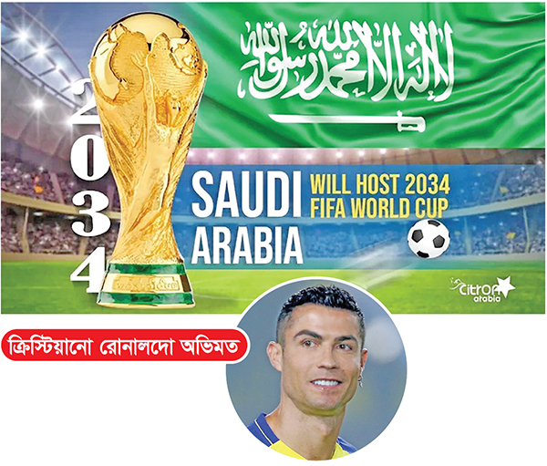 একরকম নিশ্চিতই ছিল, অপেক্ষা ছিল আনুষ্ঠানিক ঘোষণার। সেটিও এসে গেল। ফিফা ঘোষণা করলো দুই বিশ্বকাপের আয়োজক দেশের নাম। ২০৩০ সালের বিশ্বকাপ হবে ৬ দেশে। তবে পরের বিশ্বকাপ ২০৩৪ সালের আসর হবে এক দেশে। প্রথমবারের মতো বিশ্বকাপ আয়োজনের দায়িত্ব পেয়েছে সৌদি আরব। ক্রিস্টিয়ানো রোনালদোর মতে সৌদি আরবে অনুষ্ঠিত হতে যাওয়া ২০৩৪ বিশ্বকাপ সর্বকালের সেরা।