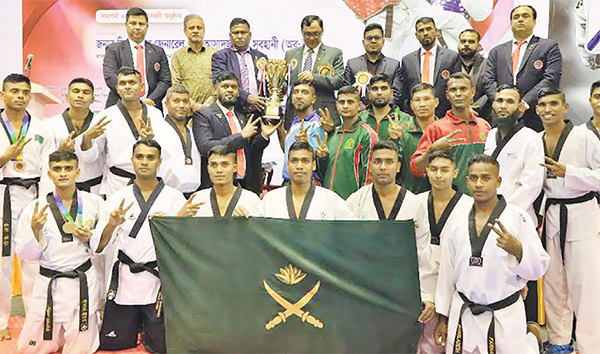 বিজয় দিবস তায়কোয়ান্দোর পুরুষ বিভাগে বাংলাদেশ সেনাবাহিনী এবং মেয়েদের বিভাগে চ্যাম্পিয়ন হয়েছে বাংলাদেশ আনসার। গতকাল বুধবার জাতীয় ক্রীড়া পরিষদের জিমন্যাশিয়ামে অনুষ্ঠিত দিনব্যাপী প্রতিযোগিতায় পুরুষ বিভাগে ছয়টি স্বর্ণ ও চারটি রুপা জিতে সেরা হয় সেনাবাহিনী। পাঁচটি স্বর্ণ, দুটি রুপা ও চারটি ব্রোঞ্জ জিতে রানার্সআপ আনসার। অন্যদিকে মেয়েদের বিভাগে চারটি স্বর্ণ ও তিনটি রুপা জিতে চ্যাম্পিয়ন বাংলাদেশ আনসার। চারটি স্বর্ণ ও একটি রুপা জিতে রানার্সআপ সেনাবাহিনী। খেলা শেষে বিজয়ীদের হাতে পুরস্কার তুলে দেন সেনাবাহিনীর সাবেক শিক্ষা পরিচালক ব্রিগেডিয়ার জেনারেল মো. আসাদুজ্জামান সুবহানী (অব.)। এ সময় ফেডারেশনের সাধারণ সম্পাদক মাহমুদুল ইসলাম রানা উপস্থিত ছিলেন। এবারের প্রতিযোগিতায় দেশের চার জেলা ক্রীড়া সংস্থা, আট ক্লাব, বিভিন্ন স্কুল-কলেজ এবং বাংলাদেশ সেনাবাহিনী, বর্ডার গার্ড এবং বাংলাদেশ আনসার ও ভিডিপির প্রায় চার শতাধিক পুরুষ ও মহিলা তায়কোয়ান্দোকা অংশ নেন।
