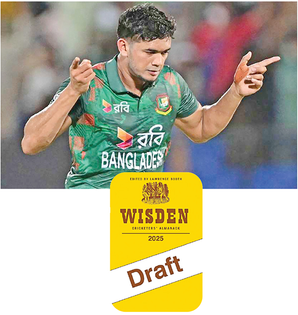 বাংলাদেশের পেস ইউনিটের বর্তমান সময়ের নেতা বলা হয় তাসকিন আহমেদকে। নেতার পরিচয়টা যেনো সে ২০২৪ সালে ভালো করেই চিনিয়েছেন। লাল সবুজ জার্সিতে তিন তিন ফরম্যাটেই ছিলেন দারুণ ধারাবাহিক। ১৯.২৩ গড়ে তিন ফরম্যাট মিলিয়ে ৬৩টি উইকেট নিয়েছেন তাসকিন। যা বাংলাদেশি বোলারদের মধ্যে সর্বোচ্চ, বিশ্ব ক্রিকেটে যৌথভাবে তৃতীয় সর্বোচ্চ। বল হাতে দারুণ পারফরমেন্সের জন্য নতুন বছরের শুরুতেই স্বীকৃতি পেলেন টাইগার এই গতি তারকা। ক্রিকেটের বাইবেলখ্যাত উইজডেনের ২০২৪ সালের ওয়ানডের বর্ষসেরা একাদশে জায়গা হয়েছে তার। ২০২৩ ওয়ানডের বিশ্বকাপের পর সব দলই গত বছরের জুনে অনুষ্ঠিত টি-টোয়েন্টি বিশ্বকাপের প্রস্তুতি নিতে শুরু করে। বিশ্ব আসরটি শেষ হতেই চলে আসে টেস্ট খেলার পর্ব। প্রিয় ফরম্যাট ওয়ানডেতে বাংলাদেশও বেশি ম্যাচ খেলার সুযোগ পায়নি, তিনটি সিরিজে মোট ৯টি ম্যাচ খেলে তারা। বাংলাদেশের সবগুলো ম্যাচ খেলা হয়নি তাসকিনের, তিনি খেলেন ৭টি ম্যাচ। এই সাত ম্যাচ দিয়েই নিজের উপস্থিতি দারুণভাবে জানান দেন বাংলাদেশ দলের পেস আক্রমণের এই নেতা। সাত ম্যাচে ২৩.৯ গড় ও ৫.৩ ইকোনমিতে ১৪টি উইকেট নেন ২৯ বছর বয়সি এই পেসার। আর তাতে উইজডেনের ২০২৪ সালের ওয়ানডের বর্ষসেরা একাদশে জায়গা হয়েছে উইজডেনের ওয়ানডে বর্ষসেরা একাদশে আছে শ্রীলঙ্কার ক্রিকেটারদের আধিক্য, দেশটির তিনজন ক্রিকেটার জায়গা পেয়েছেন। পাকিস্তান, ওয়েস্ট ইন্ডিজ ও আফগানিস্তানের দুজন করে ক্রিকেটার আছেন। বাংলাদেশ ও ইংল্যান্ডের একজন করে ক্রিকেটারকে একাদশে রাখা হয়েছে। অস্ট্রেলিয়া, ভারত, নিউজিল্যান্ড বা দক্ষিণ আফ্রিকার কোনো ক্রিকেটার নেই একাদশে। গত বছর ভারত ও নিউজিল্যান্ড মাত্র তিনটি করে ওয়ানডে খেলেছে।