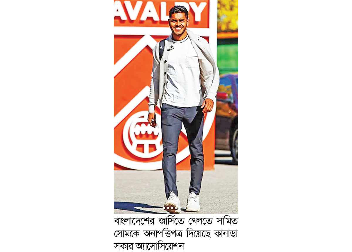 গত মার্চে শিলংয়ে এশিয়ান কাপের বাছাইপর্বের ম্যাচে ভারতের বিপক্ষে অভিষেক হয়েছে ইংল্যান্ড প্রবাসী ফুটবলার হামজা দেওয়ান চৌধুরীর। ইংলিশ প্রিমিয়ার লিগে খেলা এ তারকার নৈপুণ্যে সে ম্যাচে স্বাগতিকদের সঙ্গে ড্র করে এক পয়েন্ট আদায় করে নিয়েছিল বাংলাদেশ। এবার ঘরের মাঠে সিঙ্গাপুরের বিপক্ষে খেলবে লাল সবুজ দল। সে ম্যাচে কানাডা প্রবাসী ফুটবলার সামিত সোমকে খেলাতে চায় বাংলাদেশ। এরইমধ্যে কানাডা সকার অ্যাসোসিয়েশন তাকে অনাপত্তিপত্র দিয়েছে। কানাডার জাতীয় দলে খেলা সামিতের জন্মনিবন্ধন হয়েছে। পরের ধাপ ছিল বাংলাদেশি পাসপোর্ট তৈরি। তারপর কানাডিয়ান সকার অ্যাসোসিয়েশনের অনাপত্তিপত্র সংগ্রহ করা। তবে পাসপোর্টের আগেই সামিতের কানাডার অনাপত্তিপত্র পেয়েছে বাংলাদেশ ফুটবল ফেডারেশন।