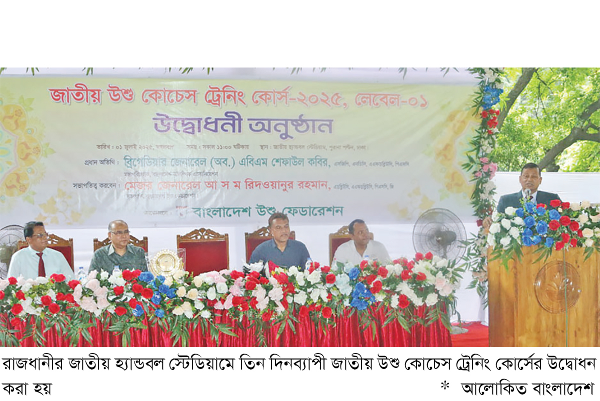 বাংলাদেশ উশু ফেডারেশনের আয়োজনে জাতীয় উশু কোচেস ট্রেনিং কোর্স-২০২৫ শুরু হয়েছে। গত মঙ্গলবার রাজধানীর শহিদ ক্যাপ্টেন এম মনসুর আলী জাতীয় হ্যান্ডবল স্টেডিয়ামে তিন দিনব্যাপী এই ট্রেনিং কোর্সের উদ্বোধন করা হয়। উদ্বোধনী অনুষ্ঠানে প্রধান অতিথি হিসেবে উপস্থিত ছিলেন বাংলাদেশ অলিম্পিক অ্যাসোসিয়েশনের মহাপরিচালক ব্রিগেডিয়ার জেনারেল (অব.) এবিএম শেফাউল কবীর।