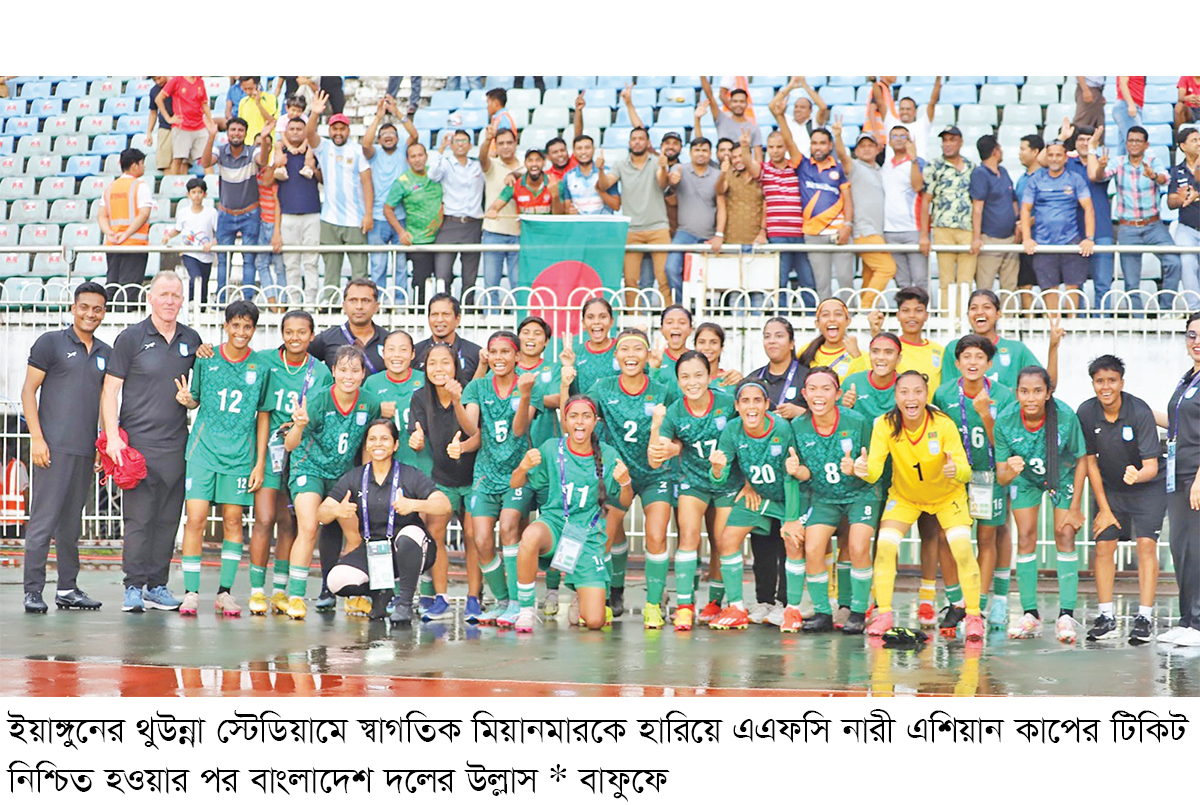 স্বপ্নের সিঁড়ি বেয়ে বাংলাদেশের মেয়েরা এখন এশিয়ান কাপে। ঋতুপর্ণা চাকমার অসাধারণ দুই গোলে স্বাগতিক মিয়ানমারকে হারিয়ে প্রথমবার ২০২৬ সালের এশিয়ান কাপের টিকিট পেয়েছে পিটার বাটলারের দল। তাতে বেড়েছে স্বপ্নের পরিধি। মেয়েদের এশিয়ান কাপের প্রস্তুতি নিয়ে ভাবতে শুরু করেছে বাংলাদেশ ফুটবল ফেডারেশন (বাফুফে)। শক্তিশালী দলগুলোর বিপক্ষে খেলে নিজেদের উন্নতির প্রয়োজনীয়তার কথা প্রায়ই তুলে ধরেন বাংলাদেশ নারী দলের কোচ পিটার জেমস বাটলার। বাছাইয়ের আগে ইন্দোনেশিয়া ও জর্ডানের বিপক্ষে ড্রয়ের ফলও তিনি পেয়েছেন মিয়ানমারে গিয়ে। প্রথমবারের মতো এশিয়ান কাপের মূল পর্বে খেলার যোগ্যতা অর্জন করেছে বাংলাদেশ।