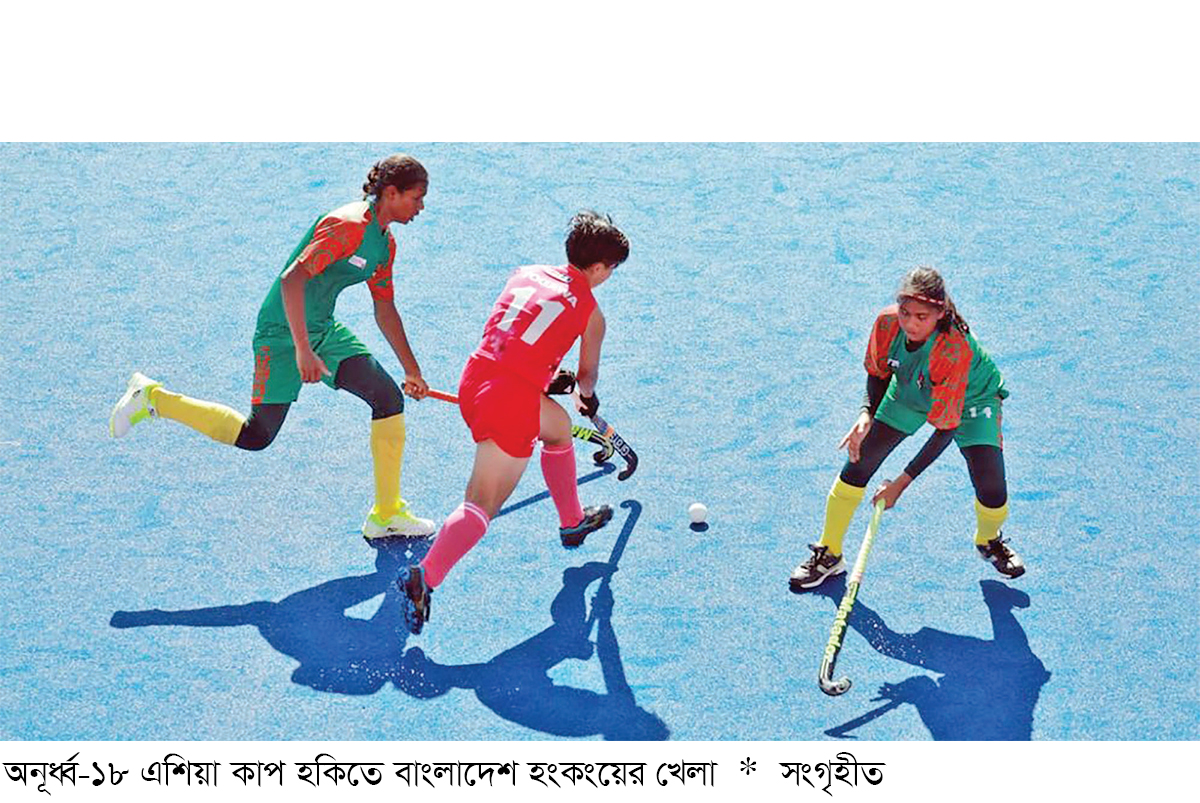 অনূর্ধ্ব-১৮ এশিয়া কাপে প্রথমবার খেলতে নেমেই শেষ চারে পা রেখেছে বাংলাদেশ নারী দল। সোমবার চীনের ডাজুতে পুলের শেষ ম্যাচে হংকংকে ৩-০ গোলে হারিয়ে শেষ চার নিশ্চিত করেছে লাল-সবুজের প্রতিনিধিরা। ম্যাচের প্রথম কোয়ার্টারে তিনটি পেনাল্টি কর্নার পেয়েও কোনো গোল করতে পারেনি বাংলাদেশ। দ্বিতীয় কোয়ার্টারেও ছিল একই চিত্র। তৃতীয় কোয়ার্টারে এসে প্রথম গোলমুখ উন্মুক্ত করেন কনা আক্তার। ৩৪ মিনিটে ফিল্ড গোল করেন তিনি। ৪২ মিনিটে পেনাল্টি কর্নার থেকে জাল কাপান আইরিন রিয়া। আর তৃতীয় গোলটি এসেছে শারিকা রিমনের স্টিক থেকে। ৫৭ মিনিটে পেনাল্টি কর্নারে গোলের দেখা পান তিনি। তিন ম্যাচে দুই জয়ে ৬ পয়েন্ট নিয়ে টেবিলের দুইয়ে থেকে পুল পর্ব শেষ করল বাংলাদেশ। হংকংয়ের আগে উজবেকিস্তানকেও হারায় ৩-০ গোলে। আসরের শুরুটা অবশ্য হয় জাপানের কাছে ১১ গোল হজম করে। তিন ম্যাচে ৯ পয়েন্ট নিয়ে পুলের শীর্ষে জাপান। এশিয়া কাপে বাংলাদেশের অনূর্ধ্ব-১৮ পুরুষ দলও রয়েছে সেমিফাইনালের পথে। ৩ ম্যাচে ৩ জয়ে ৯ পয়েন্ট নিয়ে শীর্ষে রয়েছে তারা। শেষ ম্যাচে পাকিস্তানের বিপক্ষে এক পয়েন্ট পেলেই শেষ চার নিশ্চিত হবে তাদের।