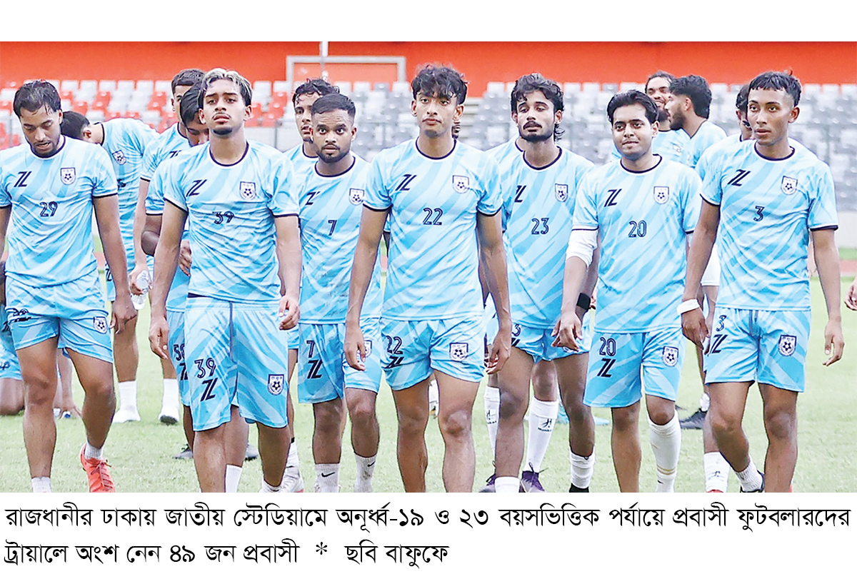 বাংলাদেশ ফুটবল ফেডারেশন (বাফুফে) প্রথমবারের মতো প্রবাসী ফুটবলারদের নিয়ে ট্রায়ালের আয়োজন করেছিল। গত ২৮ থেকে ৩০ জুন অনূর্ধ্ব-১৯ ও ২৩ দুটি বয়সভিত্তিক পর্যায়ে ৪৯ জন ফুটবলার ট্রায়াল দিয়েছিলেন। তাদের মধ্য থেকে কয়েকজন প্রবাসী ফুটবলার ডাক পাবেন আসন্ন এএফসি অনূর্ধ্ব-২৩ টুর্নামেন্টের প্রাথমিক ক্যাম্পে। কয়জনকে ডাকা হয় সেটাই দেখার বিষয়। ট্রায়াল নিয়ে ১ জুলাই আনুষ্ঠানিক সংবাদ সম্মেলনে বাফুফের টেকনিক্যাল ডিরেক্টর সাইফুল বারী টিটু অনূর্ধ্ব-২৩ দলে প্রবাসী ফুটবলারদের আরেক দফা পরখ করার আভাস দিয়েছিলেন। গতকাল জাতীয় দল কমিটির সভা শেষে নির্বাহী সদস্য ও মিডিয়া কমিটির চেয়ারম্যান আমিরুল ইসলাম বাবু আরও একটু খোলাসা করেই বলেছেন, ‘অনূর্ধ্ব-২৩ দলের ট্রায়ালে আসা ৬-৭ জন প্রবাসী ফুটবলারকে ডাকা হতে পারে।’