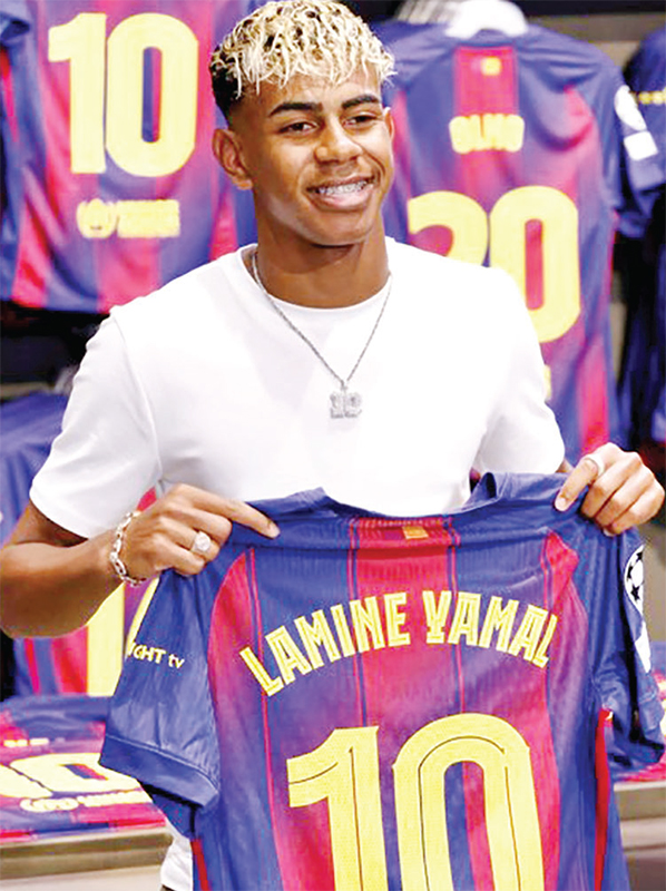 কাম্প নউয়ের কিংবদন্তি হয়ে ওঠেন আর্জেন্টাইন মহাতারকা। বার্সেলোনার ১০টি লা লিগা ও ৪টি চ্যাম্পিয়ন্স লিগ জয়ে বড় অবদান রাখেন বিশ্বকাপজয়ী এই ফুটবলার। বার্সেলোনার হয়ে সর্বোচ্চ গোলদাতাও তিনি। মেসি ছাড়াও এই ঐতিহাসিক ১০ নম্বর জার্সি এক সময় পরেছিলেন দিয়েগো ম্যারাডোনা, রোনালদিনহো, রিভালদোর ও রোমারিওর মতো কিংবদন্তিরা। মেসি ক্লাবটি ছাড়ার পর জার্সিটি পেয়েছিলেন আনসু ফাতি। কিন্তু চোটের থাবায় দলে নিয়মিত হতে পারেননি তিনি। গত মাসে ধারে মোনাকোয় যোগ দেন স্প্যানিশ ফরোয়ার্ড। এবার আইকনিক জার্সিটি পেয়ে গর্বের শেষ নেই ইয়ামালের। ‘ছোটবেলায় আমার স্বপ্ন ছিল বার্সার হয়ে খেলা, এই ক্লাবটিতে বেড়ে ওঠা এবং ১০ নম্বর জার্সটি পরে খেলা। বার্সেলোনায় জন্ম নেওয়া সব শিশুই এই স্বপ্ন দেখে। মেসি তার মতো করে ছাপ রেখেছেন, আমি আমার ছাপ রাখব।’ গত রোববার ১৮ বছর পূর্ণ করেন ইয়ামাল। এই বয়সেই বার্সেলোনার তারকা হয়ে উঠেছেন তিনি। ক্লাবটির হয়ে গড়েছেন অসংখ্য রেকর্ড ও কীর্তি। এখন পর্যন্ত সব প্রতিযোগিতা বার্সেলোনার জার্সিতে ১০৬ ম্যাচে ২৫ গোল করেছেন ইয়ামাল। ক্লাবটির হয়ে লা লিগা জয়ের পাশাপাশি কোপা দেল রে, স্প্যানিশ সুপার কাপ জিতেছেন তিনি। স্পেনের হয়ে পেয়েছেন ইউরো জয়ের স্বাদ। বার্সেলোনায় এটা হবে ইয়ামালের চতুর্থ জার্সি নম্বর। ২০২২-২৩ মৌসুমে অভিষেকের সময় তার জার্সি নম্বর ছিল ৪১। পরের মৌসুমে পান ২৭ নম্বর জার্সি এবং গত বছর তিনি খেলেন ১৯ নম্বর জার্সি পরে। বার্সেলোনায় ১০ নম্বর জার্সি পাওয়ার আগে মেসির জার্সি নম্বরও ছিল ১৯। কাতালান ক্লাবটির ১০ নম্বর জার্সি পেয়ে নিজের লক্ষ্যের কথা জানিয়েছে ইয়ামাল বললেন, ‘আমার চ্যাম্পিয়ন্স লিগ ও বিশ্বকাপ জেতা হয়নি। এখন এগুলো জেতা আমার লক্ষ্য।’ ইয়ামালের ইনস্টাগ্রাম হ্যান্ডলে একটি ভিডিও পোস্ট করা হয়। ভিডিওতে দেখা যায় নিজের ছোট ভাইয়ের সঙ্গে বসে কথা বলছেন ইয়ামাল। তার ভাই নিচে বসে টেবিলের ওপর কাগজে কিছু একটা আঁকছে, ইয়ামাল সোফায় বসে। টেবিলের ওপর রাখা কাগজে বার্সার তিনটি ১০ নম্বর জার্সির ছবি আঁকা। এ সময় ইয়ামাল তার ভাইকে বলেন, ‘এই জার্সি পরে শুধু ভালো খেললে হবে না।’ টেবিল থেকে বার্সার জার্সির ছবি আঁকা একটি কাগজের টুকরো তুলে নিয়ে ইয়ামাল বলেন, ‘কেউ কেউ ইতিহাস গড়েছেন (১০ নম্বর জার্সি পরে)।’ এরপর আরেকটি কাগজের টুকরো তুলে নিয়ে ইয়ামাল বলেন, ‘অন্যরা আনন্দ পেয়েছেন।’