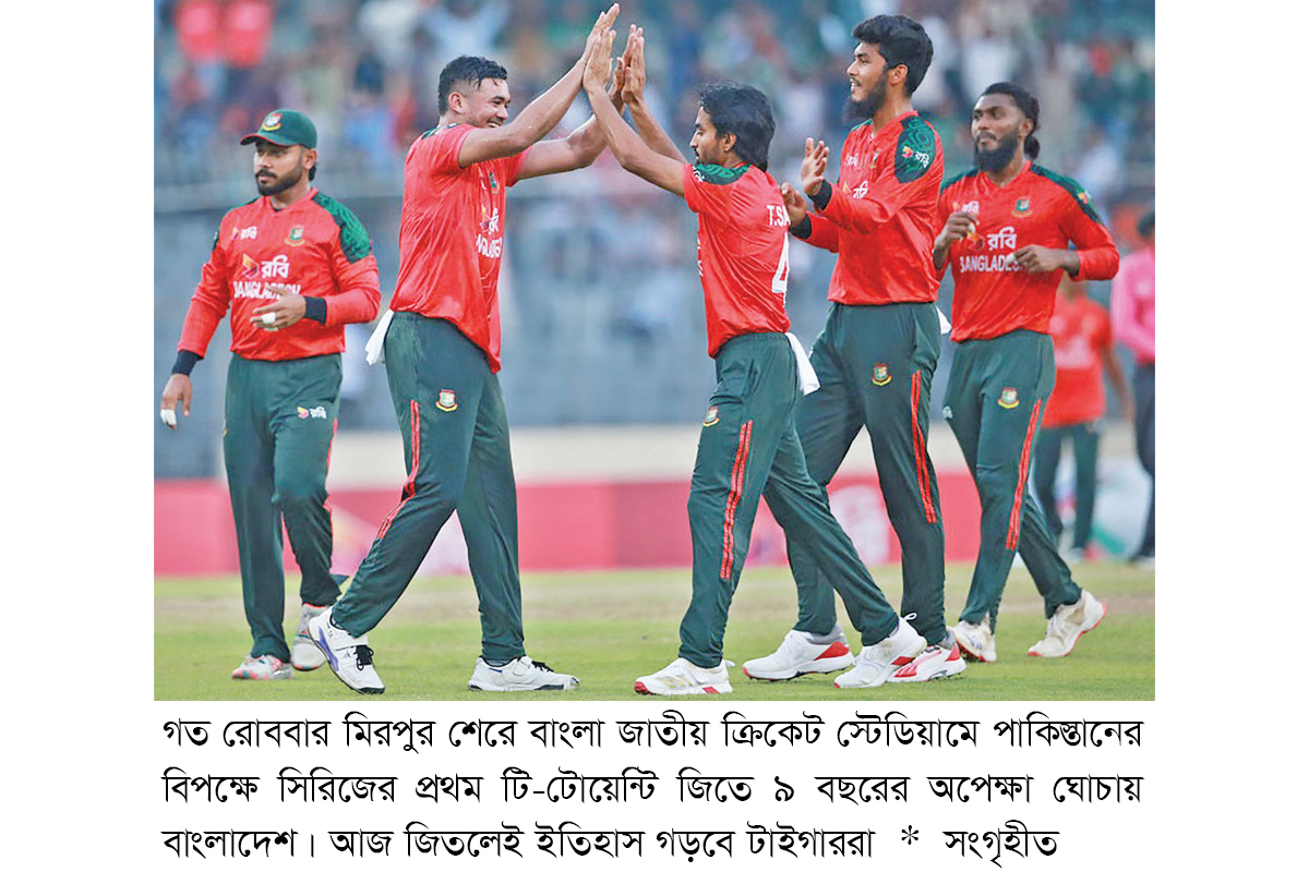 গত বছরের আগস্টে পাকিস্তানের বিপক্ষে প্রথমবার টেস্ট এবং সিরিজ জিতে ইতিহাস গড়েছিল বাংলাদেশ। দিন কয়েক আগে শ্রীলঙ্কার মাটিতে স্বাগতিকদের বিপক্ষে প্রথমবার টি-টোয়েন্টি সিরিজ জিতেছে টাইগাররা। ঐতিহাসিক সেই জয়ের রেশ কাটতে না কাটতে আরেকটি ইতিহাস গড়ার সুযোগ লিটন দাসদের সামনে। গত রোববার প্রথম টি-টোয়েন্টিতে পাকিস্তানকে ৭ উইকেটে হারিয়ে সিরিজে এগিয়ে গেছে বাংলাদেশ। দ্বিতীয় ম্যাচ জিতলে এক ম্যাচ বাকি থাকতে সিরিজ জয় নিশ্চিত হবে স্বাগতিকদের। পাশাপাশি প্রথবারের মতো পাকিস্তানের বিপক্ষে টি-টোয়েন্টি সিরিজ জয়ের ইতিহাস গড়বে বাংলাদেশ।