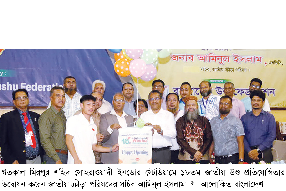 ২৮টি দলের প্রায় চারশতাধিক ক্রীড়াবিদের অংশগ্রহণের মধ্যে দিয়ে শুরু হলো ১৮তম জাতীয় উশু প্রতিযোগিতা। গতকাল বৃহস্পতিবার মিরপুর শহিদ সোহরাওয়ার্দী ইনডোর স্টেডিয়ামে প্রতিযোগিতার উদ্বোধন করেন জাতীয় ক্রীড়া পরিষদের সচিব আমিনুল ইসলাম। বাংলাদেশ উশু ফেডারেশনের সভাপতি মেজর জেনারেল আ স ম রিদওয়ানুর রহমানের সভাপতিত্বে উদ্বোধনী অনুষ্ঠানে প্রধান অতিথির বক্তব্যে জাতীয় ক্রীড়া পরিষদের সচিব উশুর জন্য সর্বপ্রকার সহায়তার আশ্বাস প্রদান করেন।