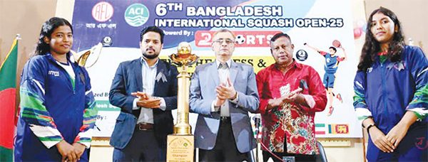 এক সঙ্গে স্কোয়াশের দুটি আন্তর্জাতিক আসর আগামীকাল শনিবার থেকে বসতে যাচ্ছে ঢাকায়। যেখানে অংশ নেবেন ভারত, ইরান, কুয়েত, শ্রীলঙ্কা, মালয়েশিয়া ও স্বাগতিক বাংলাদেশের খেলোয়াড়রা। একটি ছেলেদের পিএসএ চ্যালেঞ্জ ট্যুর এবং অন্যটি মেয়েদের ডব্লুএসএফ ও পিএসএ স্যাটালাইট টুর্নামেন্ট। যার পোশাকি নাম আরএফএল-এসিআই ষষ্ঠ আন্তর্জাতিক বাংলাদেশ স্কোয়াশ ওপেন টুর্নামেন্ট। এ বছর বাংলাদেশের জাতীয় দলের শাহাদাৎ, রনি ও সুমন এবং বয়সভিত্তিক দলের উদীয়মান স্কোয়াশ খেলোয়াড় বিকেএসপির সাইমুন, আমিনুল, পারভেজ ও সেনাবাহিনীর আপন ও আজিজের সঙ্গে খেলবেন ইরান, ভারত, শ্রীলংকা, কুয়েত ও মালয়েশিয়ার আটজন পেশাদার স্কোয়াশ খেলোয়াড়। পাশাপাশি মেয়েদের স্যাটেলাইট ট্যুরে বাংলাদেশের মারজান, চাঁদনী, নাবিলা, উর্দূ, মেঘনা, জুই, মানিকা ও পূজা রানীসহ প্রথম সারির ১৩ জন নারী খেলোয়াড় খেলবেন মালয়েশিয়ার জমজ বোন পেশাদার নারী স্কোয়াশ খেলোয়াড় ভিনিকা ও ভার্টিকা এবং ইরানের রামজানজাদে নামিনি নারগোলের সঙ্গে। প্রতিযোগীতা দুটির খেলা ঢাকা সেনানিবাসের আর্মি স্কোয়াশ কমপ্লেক্স, আর্মি অফিসার্স মেস ও ইনডিপেনডেন্ট বিশ্ববিদ্যালয়ের স্কোয়াশ কোর্টে অনুষ্ঠিত হবে। গতকাল বৃহস্পতিবার বাংলাদেশ অলিম্পিক অ্যাসোসিয়েশনে (বিওএ) অনুষ্ঠিত এক সংবাদ সম্মেলনে এ তথ্য জানান স্কোয়াশ র্যাকেটস ফেডারেশনের সাধারণ সম্পাদক ব্রিগেডিয়ার জেনারেল (অব.) কামরুল ইসলাম। এ সময় যুব ও ক্রীড়া সচিব মাহবুব উল আলম এবং আরএফএলের বিপণন প্রধান শাহীন শফিক উপস্থিত ছিলেন।