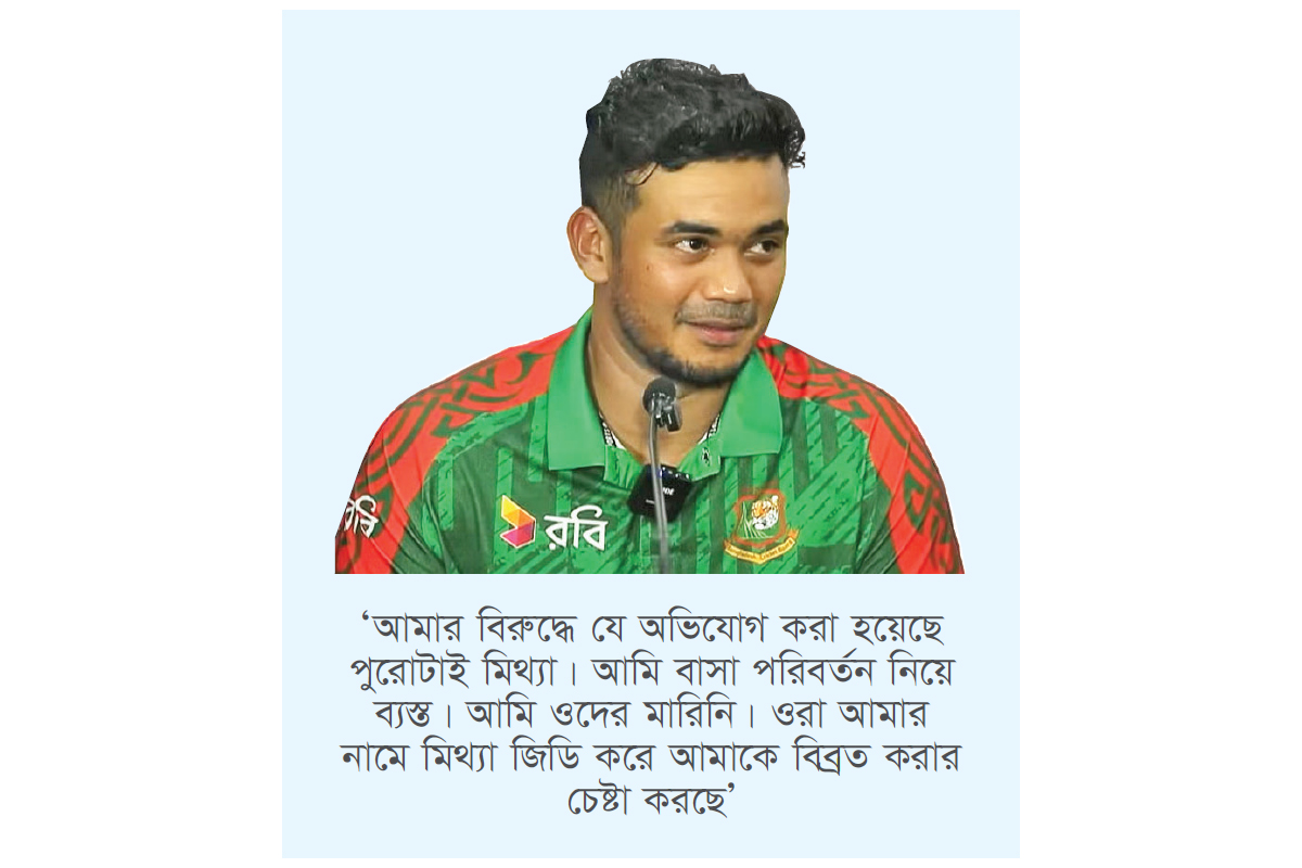 আমি আমার ছোটবেলার বন্ধুর গায়ে হাত তুলেছি এমন একটা ঘটনায় অনেক কিছুই ঘটে যাচ্ছে। আমার মনে হয় এমন গুজবে কান দিয়ে বিভ্রান্ত হবেন না এবং অন্যকেও বিভ্রান্ত করবেন না। এটা আমার, আমার পরিবার ও আমার বন্ধুর জন্য সম্মানজনক না। যা ঘটেছে সেজন্য বন্ধু ও আমার মধ্যে কথা হয়েছে। এটা যে পর্যায়ে গেছে কোনোভাবে এমনটা হওয়ার কথা নয়। শুধু একটা কথাই বলতে চাই বিষয়টা অন্য, বাস্তবতা ভিন্ন (মিথ্যা বানোয়াট ও উদ্দেশ্য প্রণোদিত)। আশা করি সত্য এর সাথেই থাকবেন, সত্য কখনো মিথ্যা হয় না।’ বিষয়টি নিয়ে বিসিবি পরিচালক এবং মিডিয়া কমিটির চেয়ারম্যান ও আম্পায়ার্স কমিটির চেয়ারম্যান ইফতেখার রহমান মিঠু বলেছেন, ‘মিডিয়াতে নিউজটা সকালে দেখলাম। আমাদের আমিনুল ইসলাম বুলবুল এবং ফাহিম ভাইও দেখেছে। এটা নিয়ে অলরেডি তদন্ত শুরু হয়ে গেছে। এটা যদি ঘটে থাকে তাহলে সেটা খুব দুঃখজনক। আইকন প্লেয়ারের এসবে জড়ানো উচিত না। আমি এই ব্যাপারে আর মন্তব্য করতে চাচ্ছি না। কী হয়েছে সেটা আগে বের হোক।’