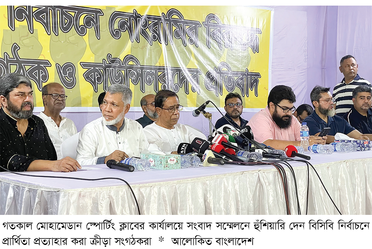 মোহামেডান স্পোর্টিং ক্লাবের কার্যালয়ে সংবাদ সম্মেলন করেছেন বিসিবি নির্বাচনে প্রার্থিতা প্রত্যাহার করা ক্রীড়া সংগঠকরা। এ সময় নিজেদের দাবি ও এর যৌক্তিকতা উত্থাপন করেন মোহামেডানের কাউন্সিলর মাসুদুজ্জামান। লিখিত বক্তব্যে তিনি বলেন, বিসিবি নির্বাচনের নামে প্রহসন হচ্ছে, যা বিশ্বে বাংলাদেশের ক্রিকেটকে বিতর্কিত করছে। ৬ অক্টোবর প্রশ্নবিদ্ধ নির্বাচন আয়োজন করলে ইতিহাস কলঙ্কিত হবে। চলমান এই সমস্যা সমাধানে তিন দফা দাবি জানান তারা। সংগঠকদের দাবিগুলো হচ্ছে, পরিচালনা পর্ষদ নির্বাচনের সময় বৃদ্ধি (পেছানো) করা, অ্যাডহক কমিটির মাধ্যমে নির্বাচন আয়োজন এবং বর্তমান নির্বাচন কমিশন কিংবা নতুন গঠিত কমিশনের মাধ্যমে পুনরায় তফসিল ঘোষণার মাধ্যমে সবার অংশগ্রহণ নিশ্চিত করা।