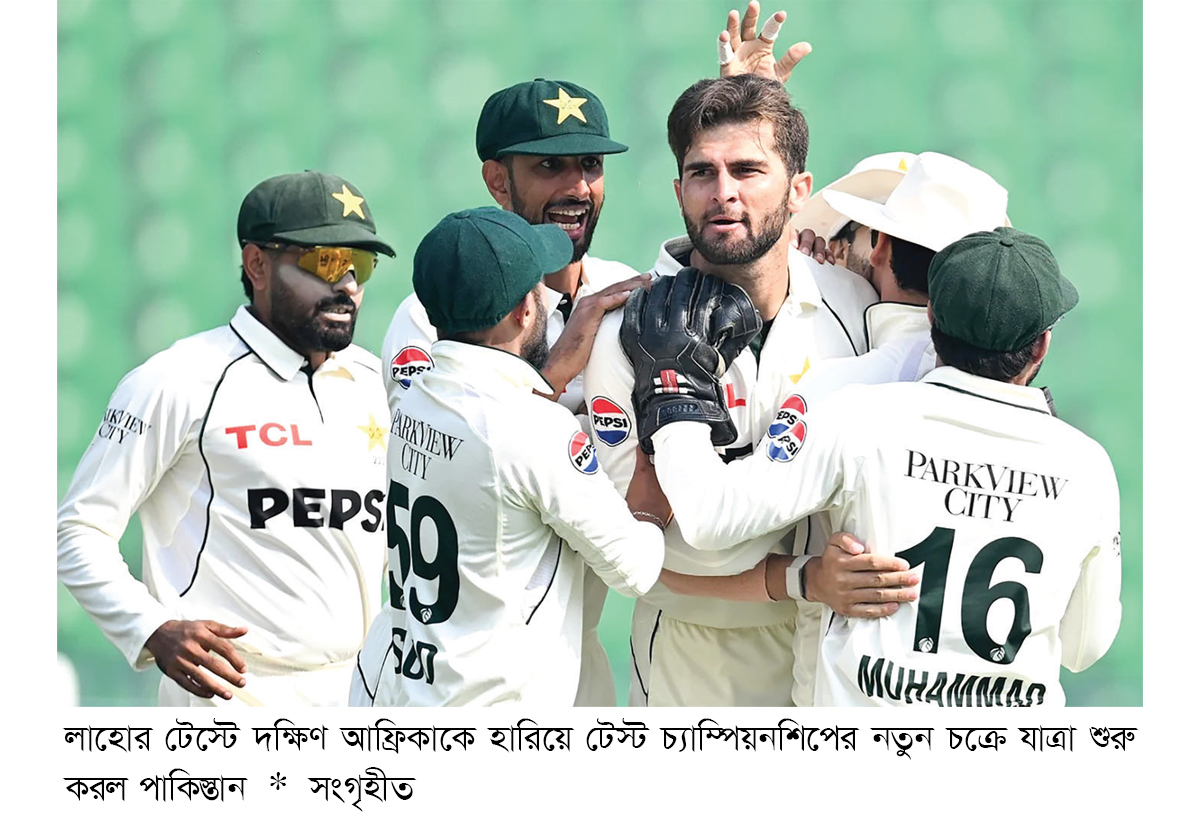 আইসিসি টেস্ট চ্যাম্পিয়নশিপের নতুন চক্রে দুই দলেরই প্রথম ম্যাচ ছিল এটি। জয় দিয়ে শুরু হলো পাকিস্তানের পথচলা। আগের চক্রের চ্যাম্পিয়ন দক্ষিণ আফ্রিকার শিরোপা ধরে রাখার অভিযানের শুরুটা ভালো হলো না। টানা ১০ টেস্ট জয়ের পর হারের তেতো স্বাদ পেল প্রোটিয়ারা। দ্বিতীয় ইনিংসে ৪টিসহ ম্যাচে ১০ উইকেট নিয়ে পাকিস্তানের নায়ক নোমান আলি। ৩৯ বছর বয়সী বাঁহাতি স্পিনার ২০ টেস্টের ক্যারিয়ারে তৃতীয়বার পেলেন এই স্বাদ। দক্ষিণ আফ্রিকার শেষ তিনটিসহ দ্বিতীয় ইনিংসে ৪ উইকেট শিকার করেন পেসার শাহিন শাহ আফ্রিদিও। পাকিস্তানের মাটিতে টেস্টে সর্বোচ্চ রান তাড়ার রেকর্ড গড়ার চ্যালেঞ্জ ছিল দক্ষিণ আফ্রিকার সামনে। স্পিন সহায়ক উইকেটে তৃতীয় দিন শেষে জয়ের জন্য সফরকারীদের প্রয়োজন ছিল ২২৬ রান, আর স্বাগতিকদের ৮ উইকেট।