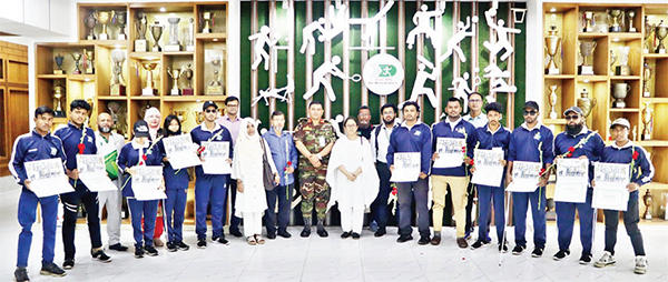 যুব ও ক্রীড়া মন্ত্রণালয়ের উদ্যোগে এবং বিকেএসপির পরিচালনায় জুলাই শহিদ স্মৃতি ফাউন্ডেশনের আহত ছাত্রদের নিয়ে আয়োজিত দুই মাসব্যাপী বিশেষ ক্রীড়া প্রশিক্ষণ ক্যাম্পের সমাপনী ও সনদ প্রদান করা হয়। গতকাল বুধবার বিকেএসপিতে চারটি ক্রীড়া বিভাগ আর্চারি, অ্যাথলেটিকস, টেবিল টেনিস ও শ্যুটিং এ নির্বাচিত ১২ জনকে দুই মাসের বিশেষ ট্রেনিং দেওয়া হয়। বিকেএসপির পরিচালক (প্রশিক্ষণ) কর্নেল মো. গোলাম মাবুদ হাসান জুলাই যোদ্ধাদের হাতে সনদ তুলে দেন। অনুষ্ঠানে জুলাই যোদ্ধা জাকির সিকদার বিকেএসপিতে প্রশিক্ষণের গ্রহণের বিষয়টি তাদের জীবনে স্মরণীয় হয়ে থাকবে বলে জানান এবং বিকেএসপিতে প্রশিক্ষণের সুযোগ করে দেয়ায় জুলাই শহিদ স্মৃতি ফাউন্ডেশকেও ধন্যবাদ জানান। জুলাই বিপ্লবের শহিদ জননী ও জুলাই শহিদ স্মৃতি ফাউন্ডেশনের সাধারণ সম্পাদক শামসি আরা জামান তার বক্তব্যে বিকেএসপির দুই মাসের প্রশিক্ষণে ছেলে-মেয়েরা যে আত্মবিশ্বাস ফিরে পেয়েছে তার উপর ভিত্তি করে তারা সমাজে প্রতিষ্ঠিত হতে পারবে বলে তিনি মনে করেন।